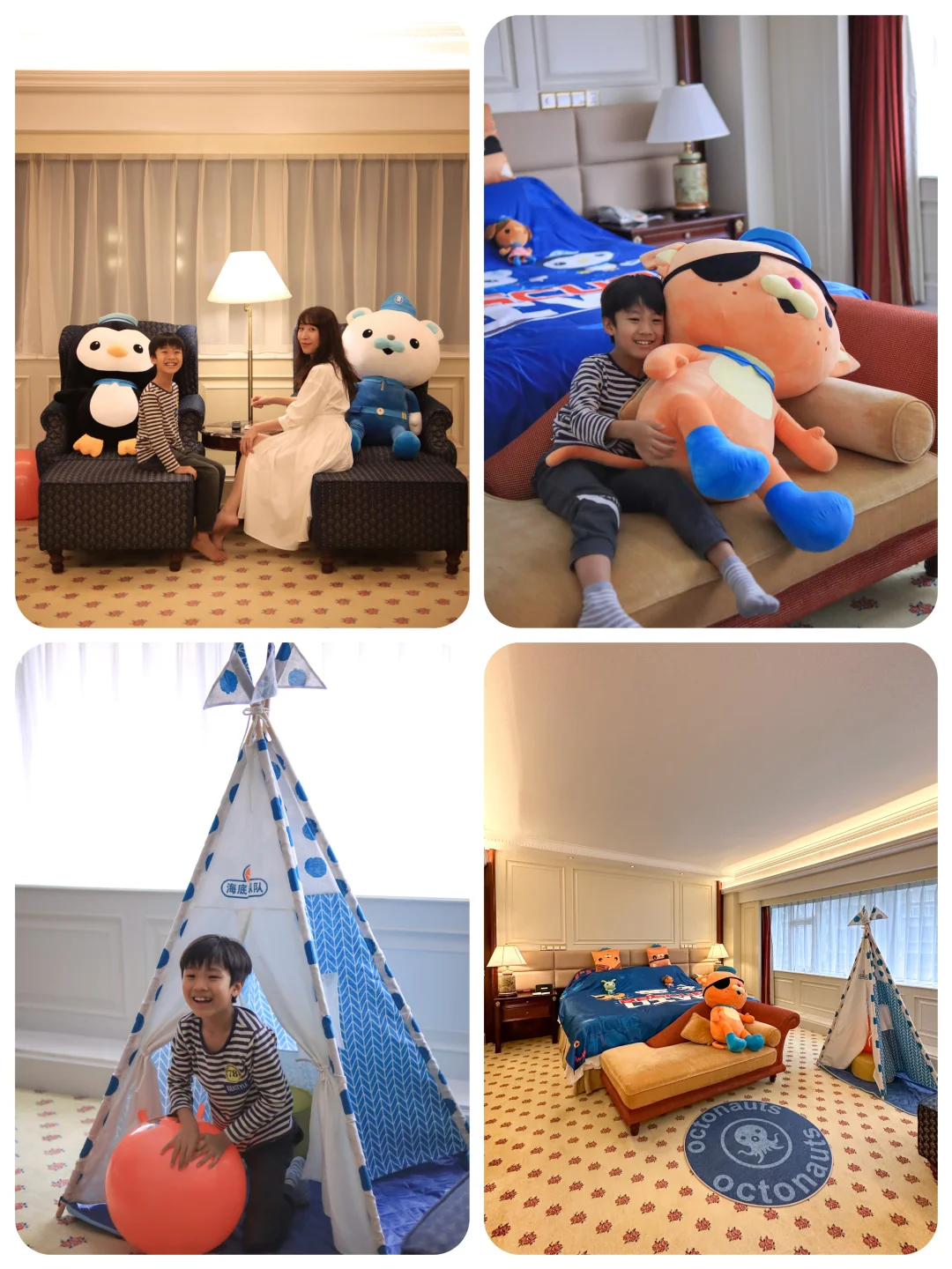 🔹海底小纵队亲子房是个大开间,70几平米除了卫生间之外别无隔断,活动空间妥妥的大,隔音还非常好。另外酒店还有小型儿童游乐场所和室内恒温泳池,不想出门的设施足够游玩。