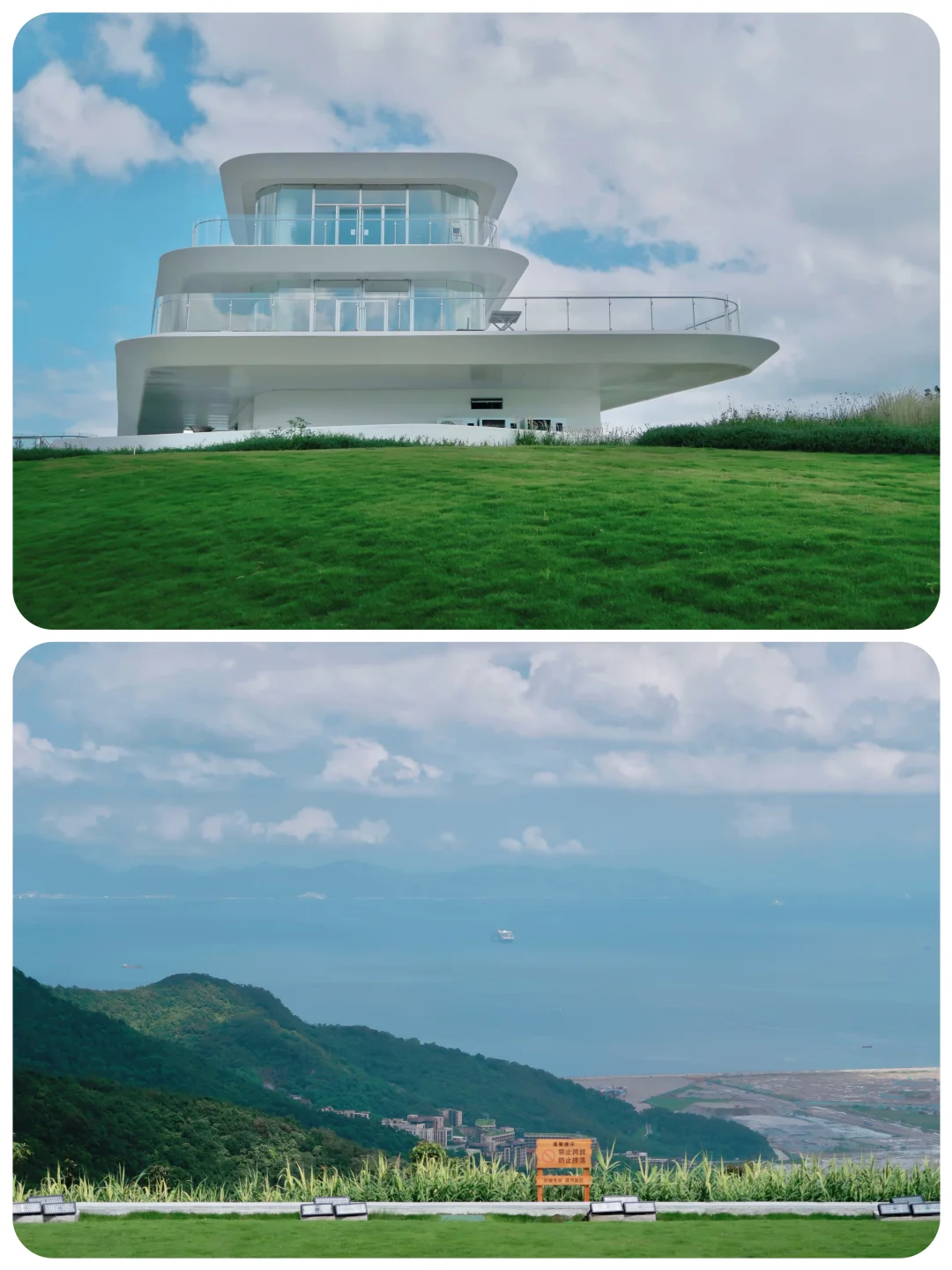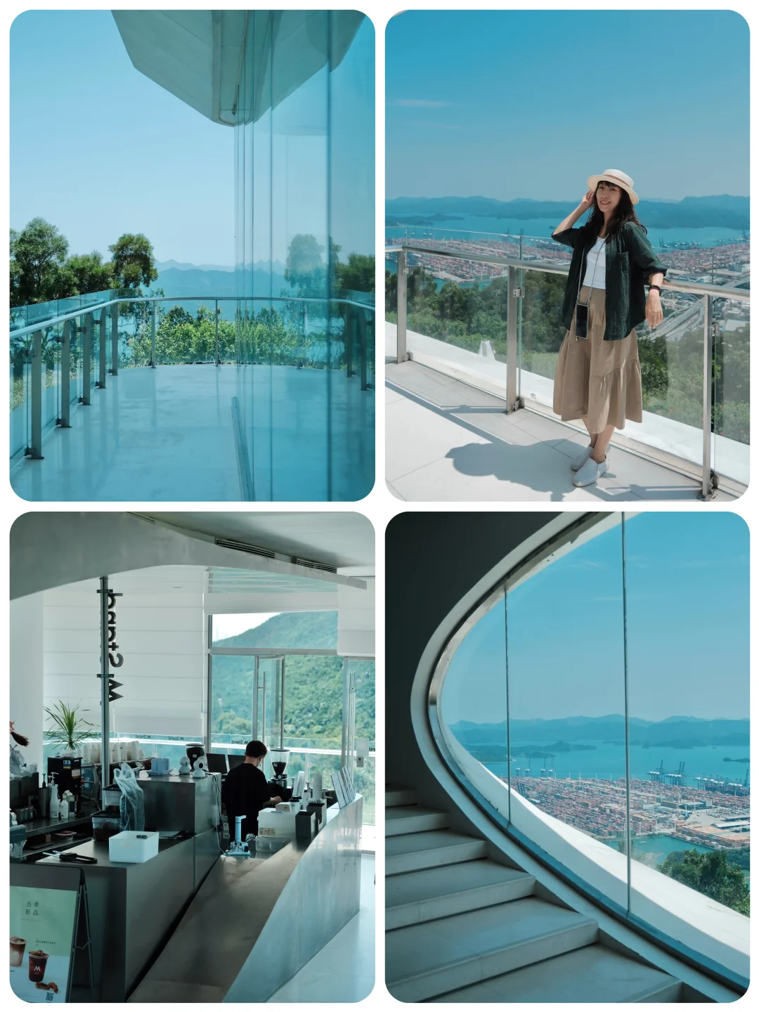 🔹登顶之后看见一栋纯白色船型建筑就是了,这里是俯瞰盐田港的最佳位置之一,有着深圳最高的图书馆免费开放,咖啡厅也提供了舒适的窗边位置,正好可以点上一杯感受风卷云舒,特别惬意。