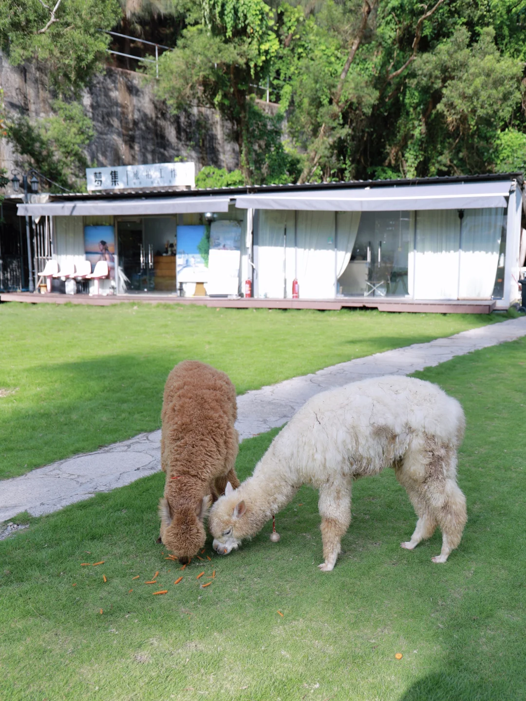 ▫️14:00 云海时光营地喝下午茶,在草坪上偶遇羊驼和小羊,漫画感氛围拉满