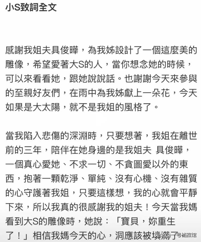 说实话这都不是小S第一次尬吹具俊晔了,之前具俊晔设计了大S的纪念雕像,她看过就不断的吹嘘。