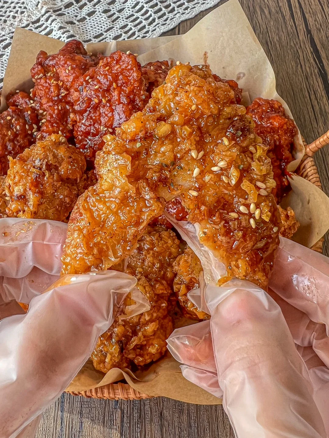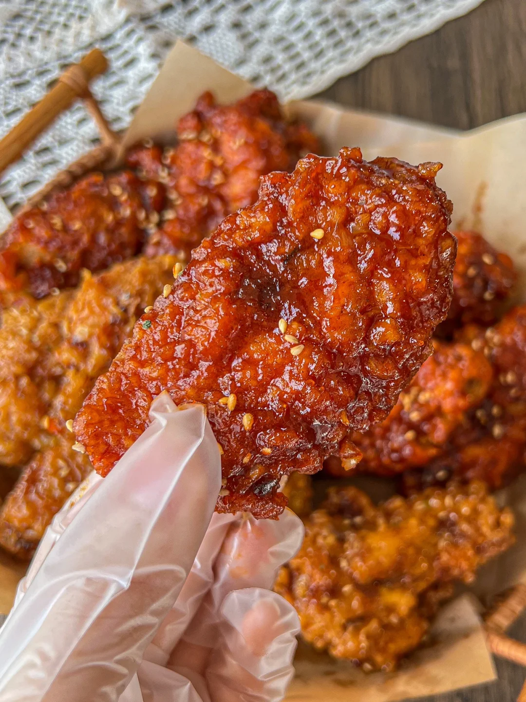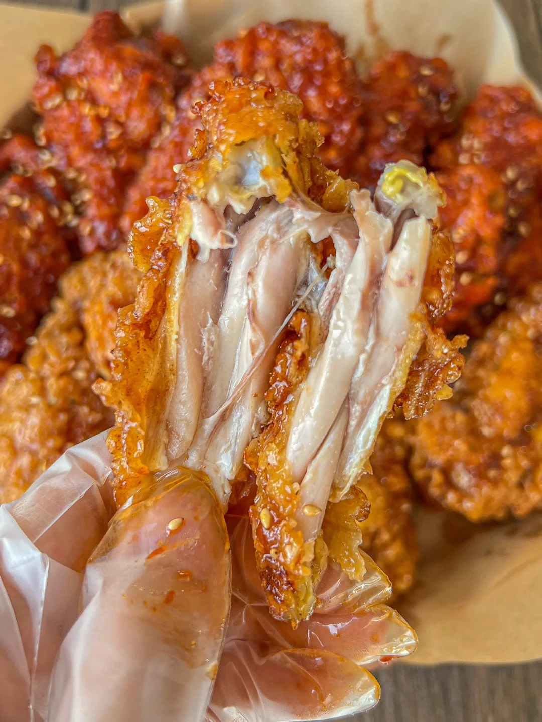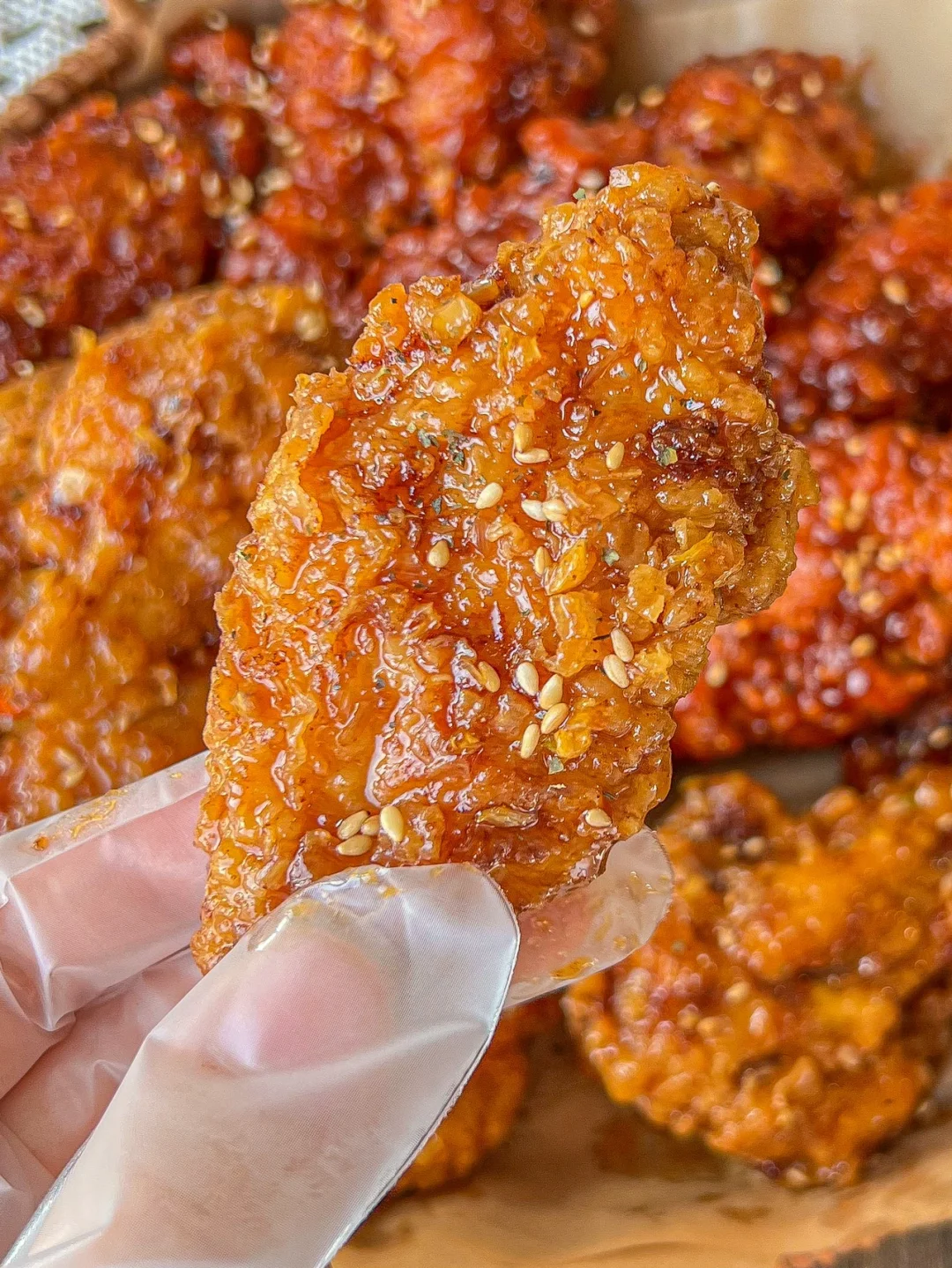 炸出来的鸡肉巨多汁 不裹酱料都很香~