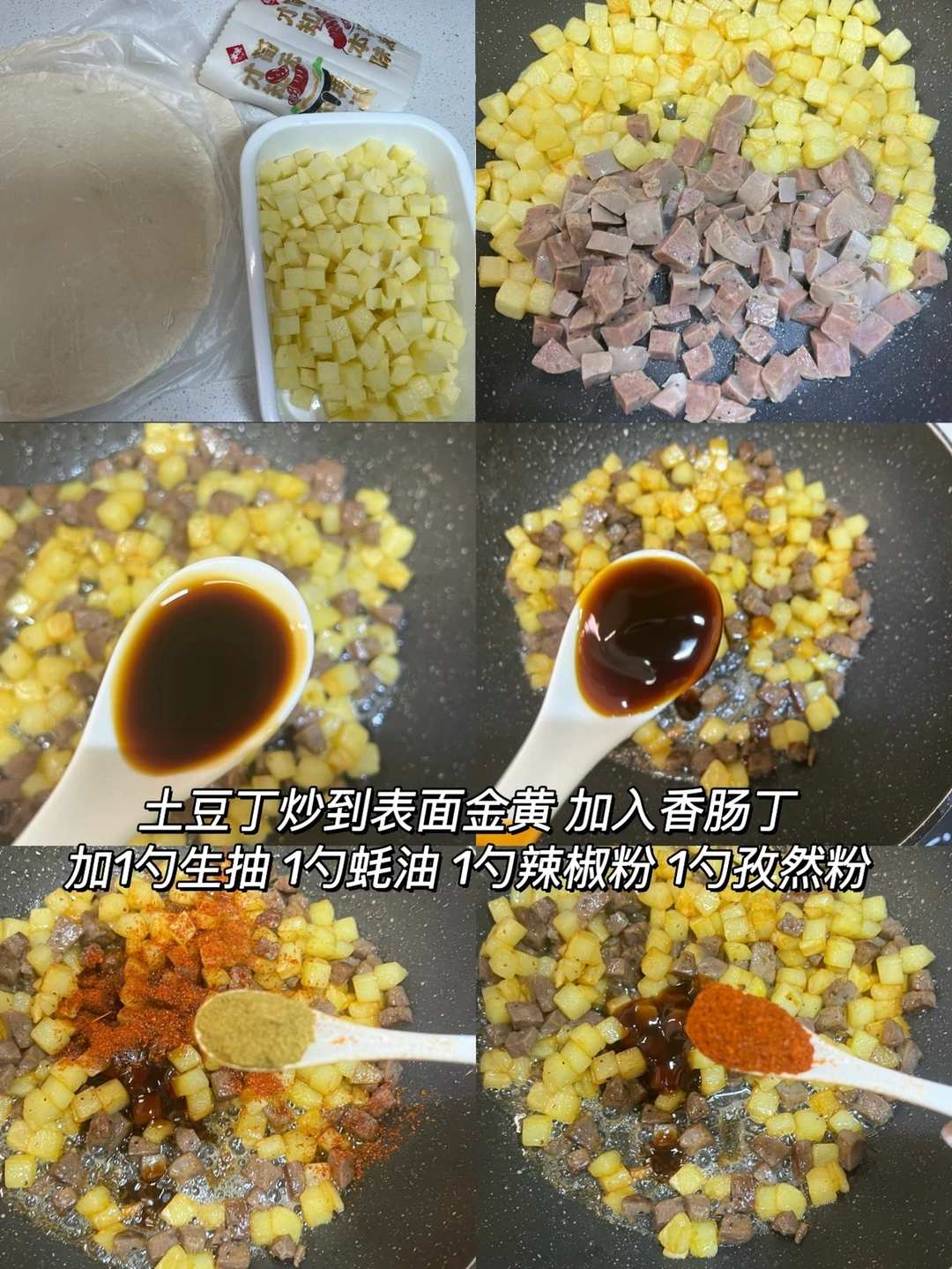😋外面酥酥脆脆的 里面土豆和香肠的馅料香香辣辣太好吃啦~不用和面hin简单!!