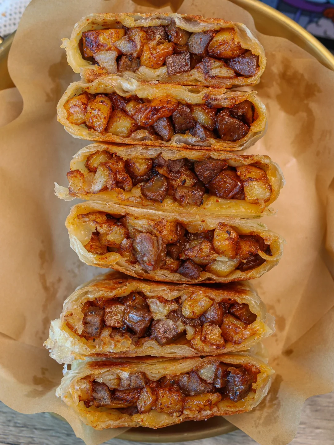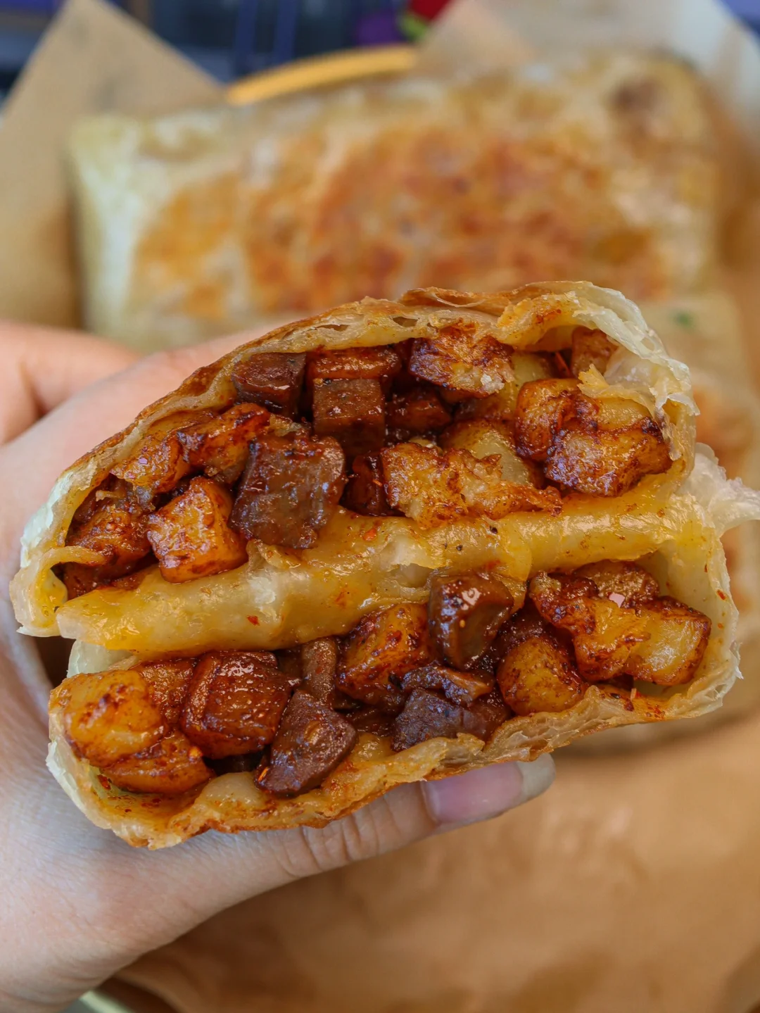 我奶做的这个孜然土豆香肠饼真是盖了帽了!!