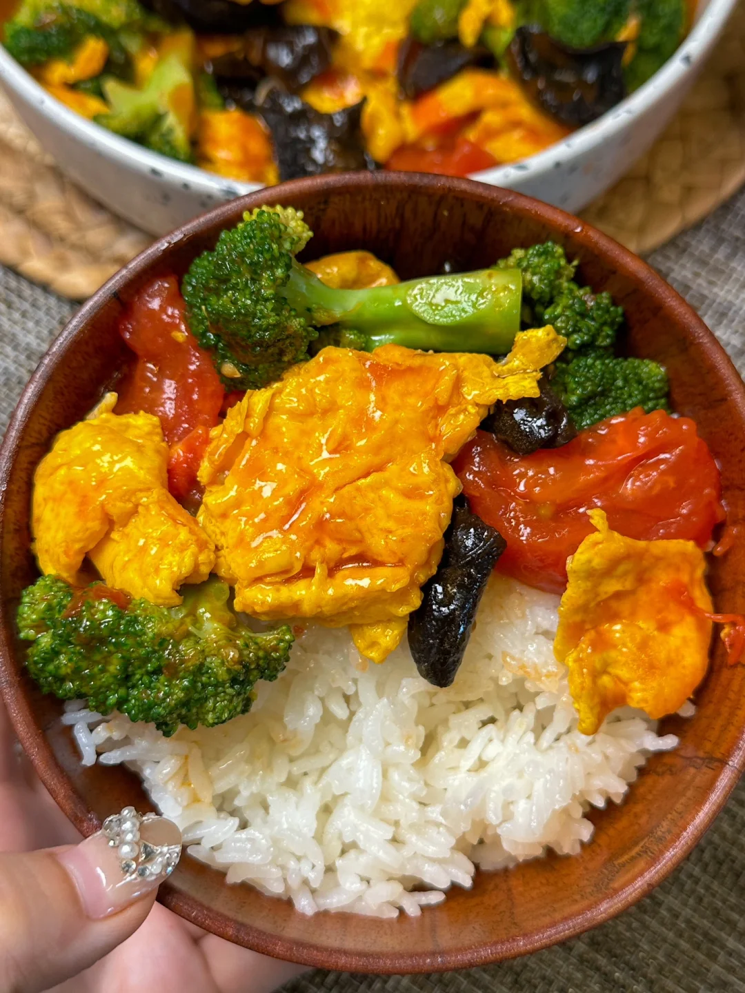盖了帽了...这个番茄西蓝花炒蛋太好吃了!!