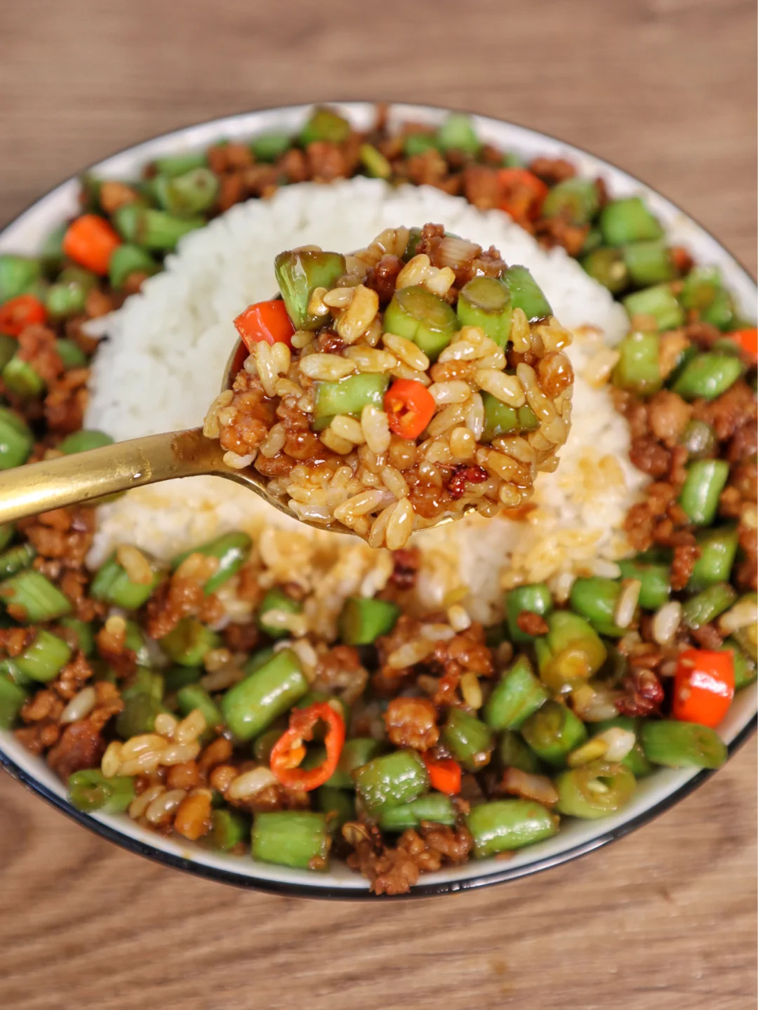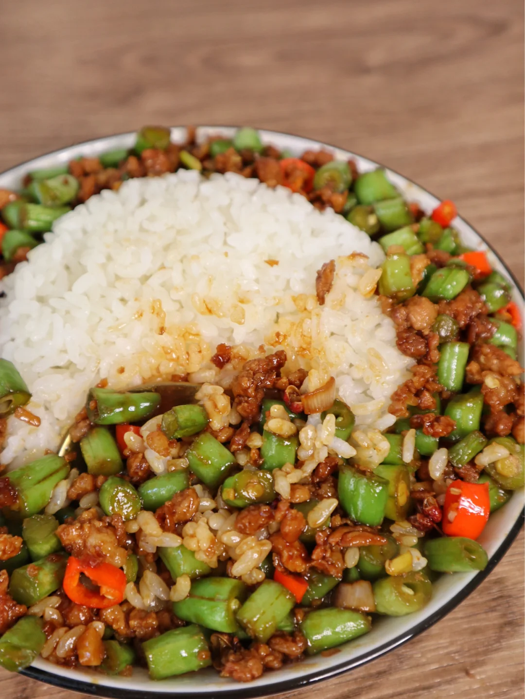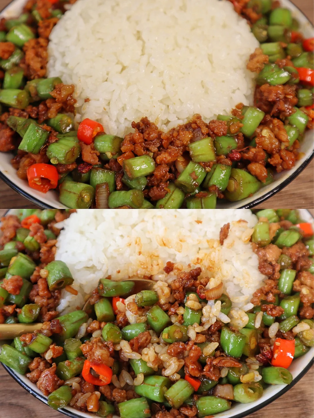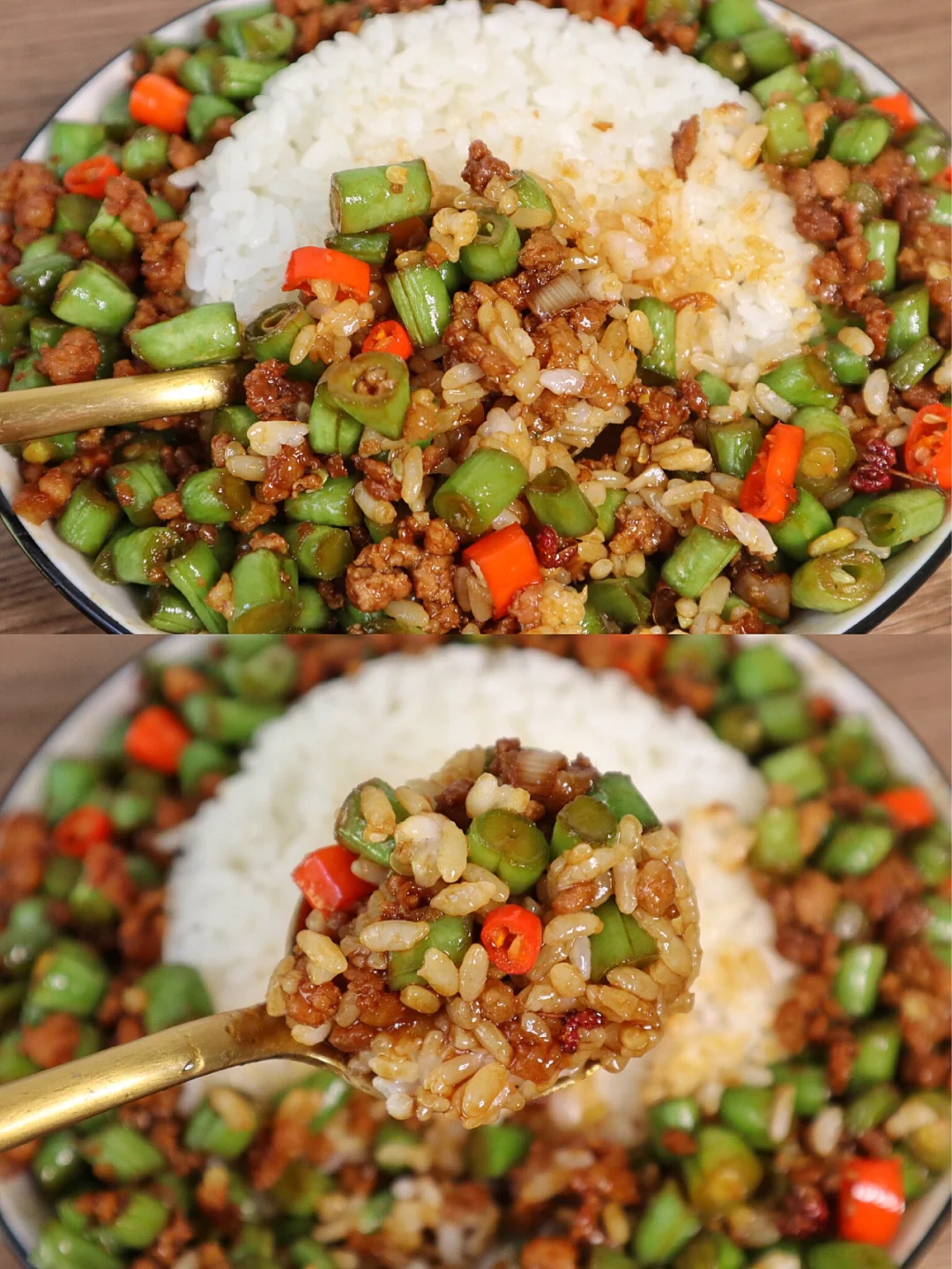 巨过瘾的香辣豆角肉末拌饭‼️我吃了三碗饭💥