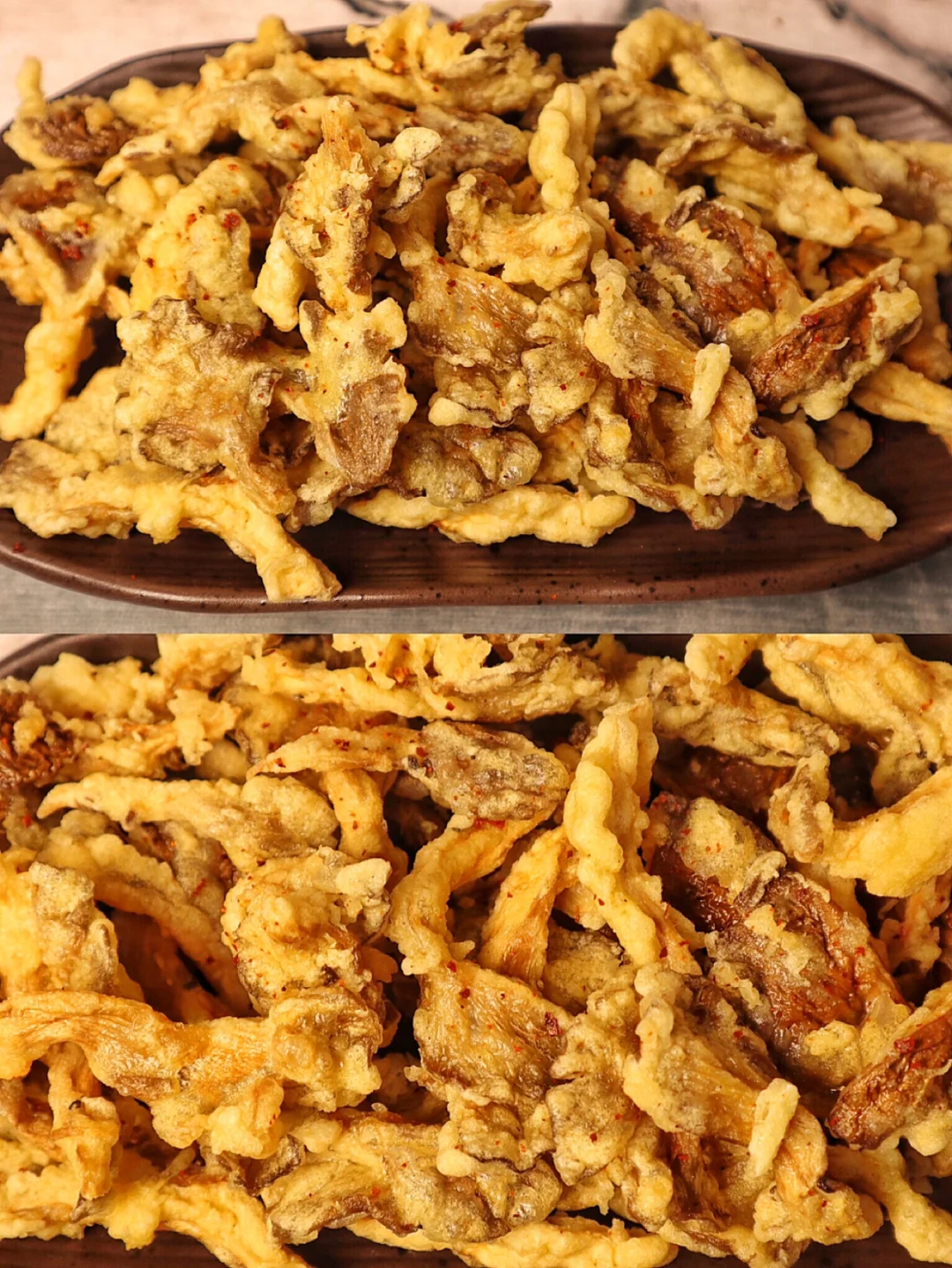 最近猪肉已经是天价了,于是最近总做这个炸平菇解馋,肉味十足超好吃