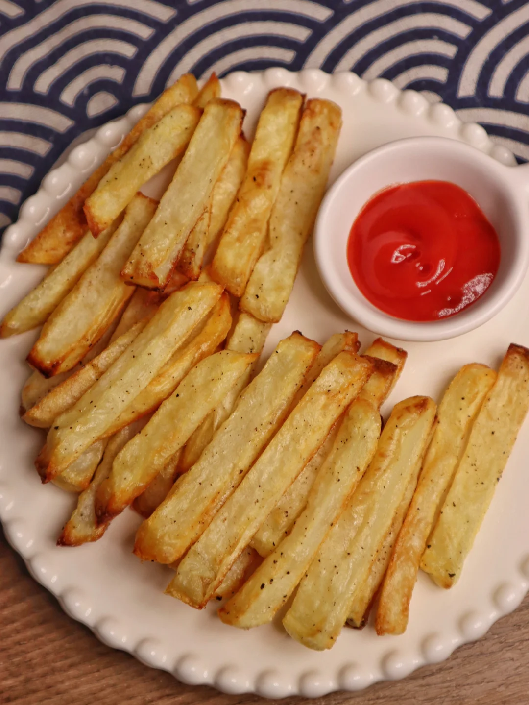 我敲爱吃薯条的,奈何油炸热量太高了,没想到烤的薯条居然更好吃,最喜欢这种粗粗的薯条啦,满足~