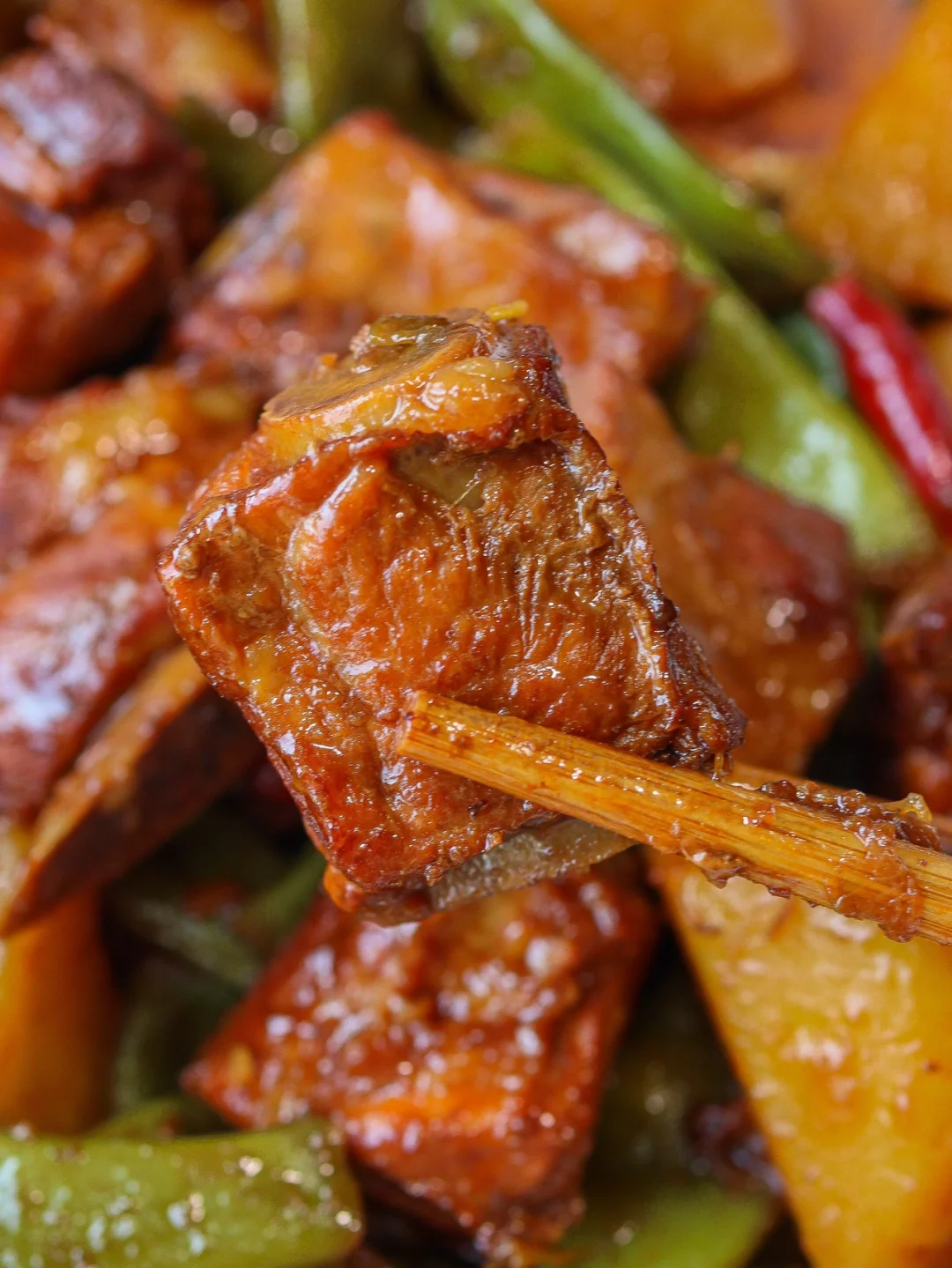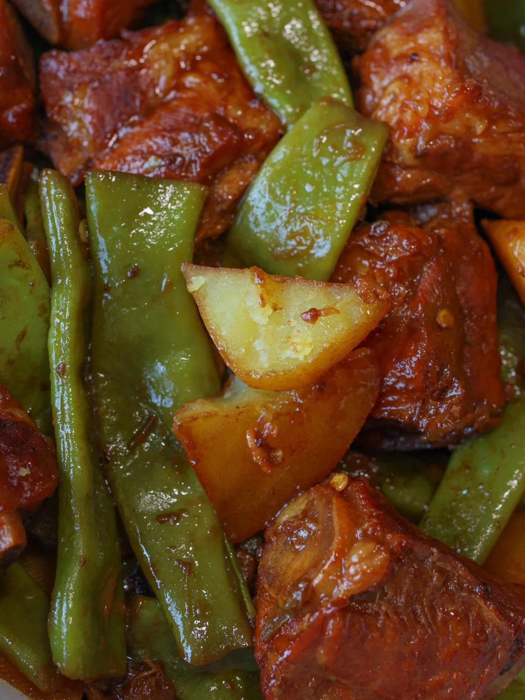 每次回老家奶奶就给做这个豆角土豆炖排骨,我真太喜欢吃了~