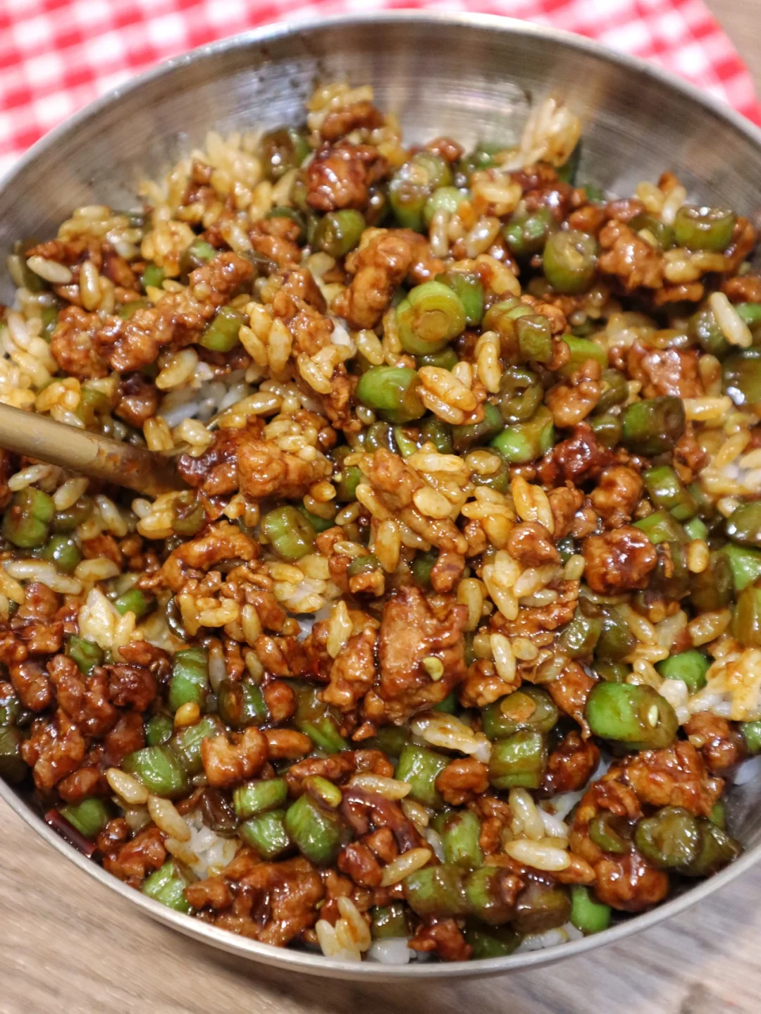 每当我不知道吃啥的时候我就做这个肉沫豆角拌饭😋因为又简单又好吃,总也吃不腻✅