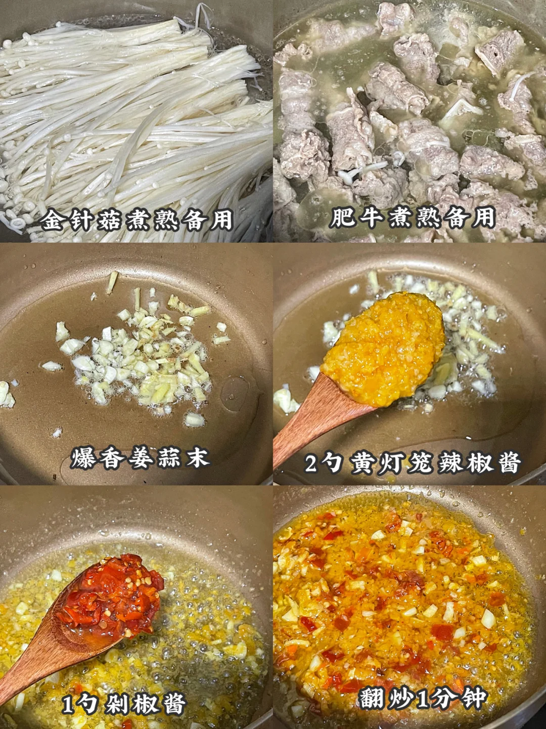 1️⃣金针菇和肥牛焯水后盛出备用