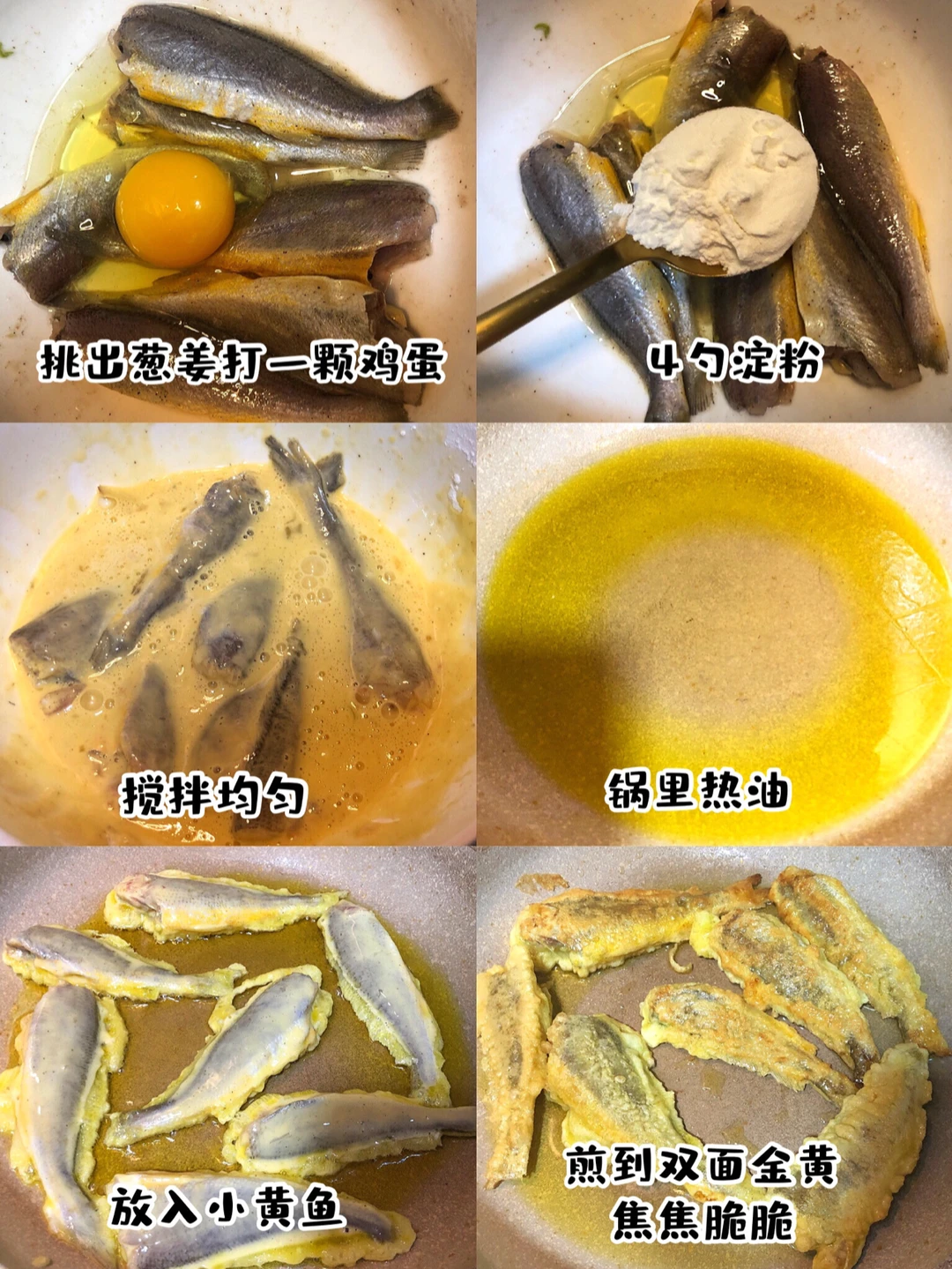 小黄鱼500g 葱姜 鸡蛋一颗 淀粉4勺