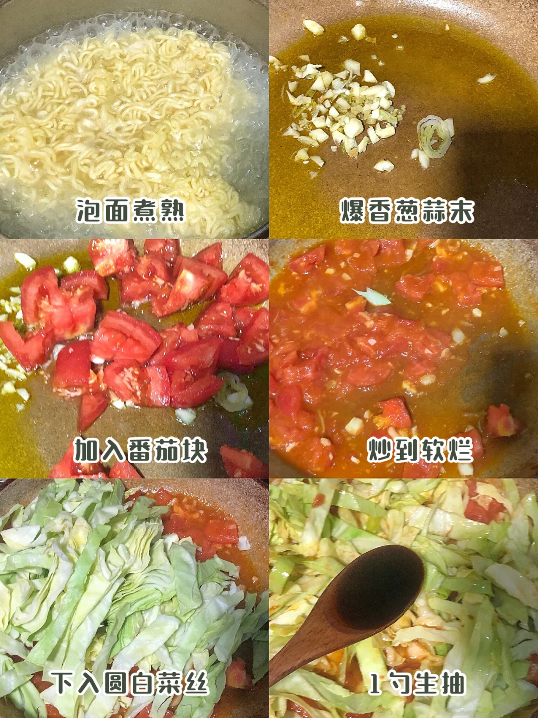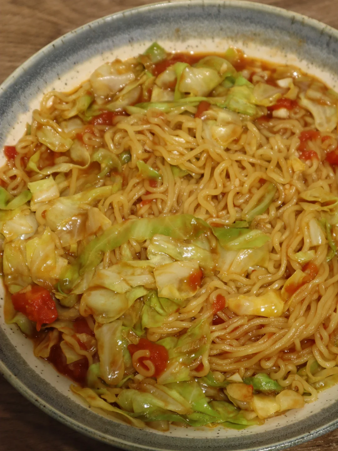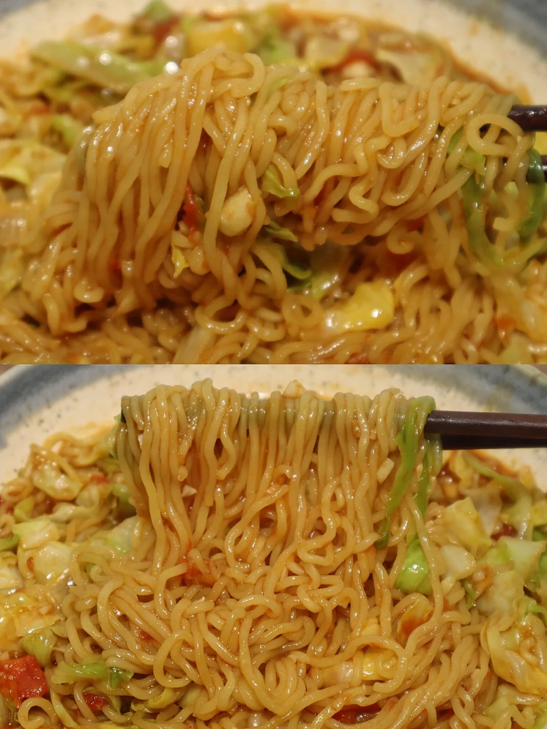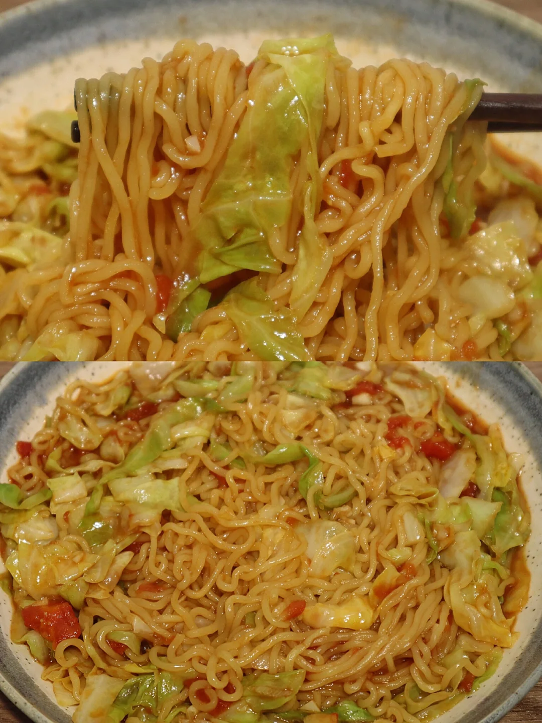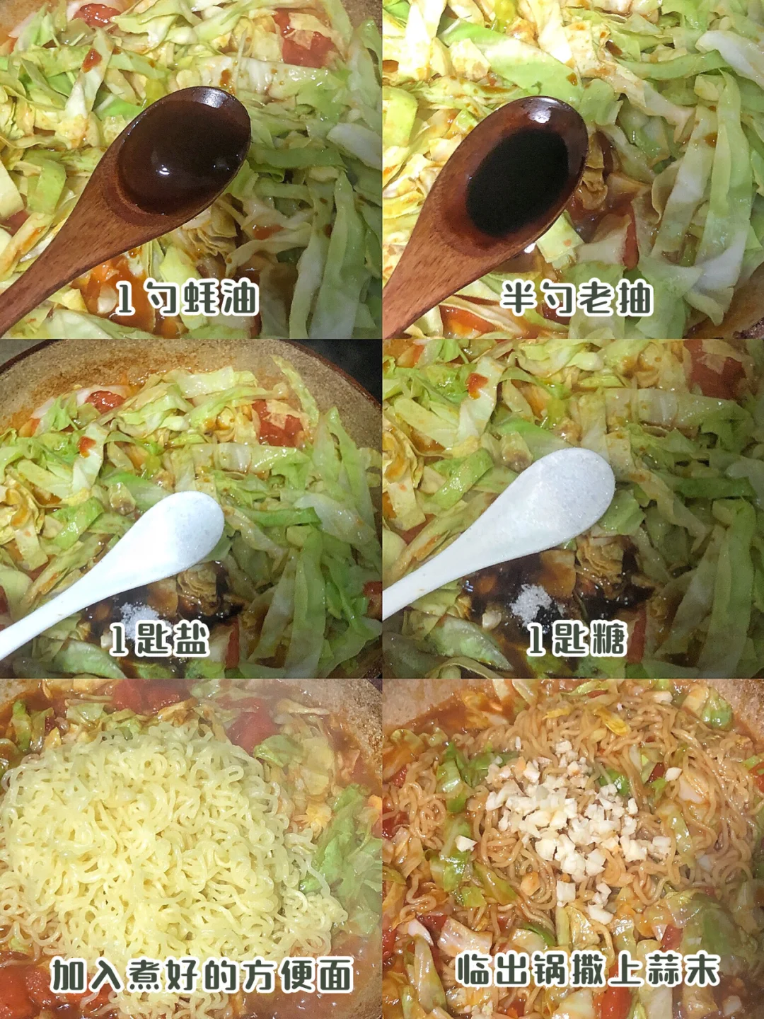 好吃到上天‼️茄汁圆白菜炒方便面🍅超快