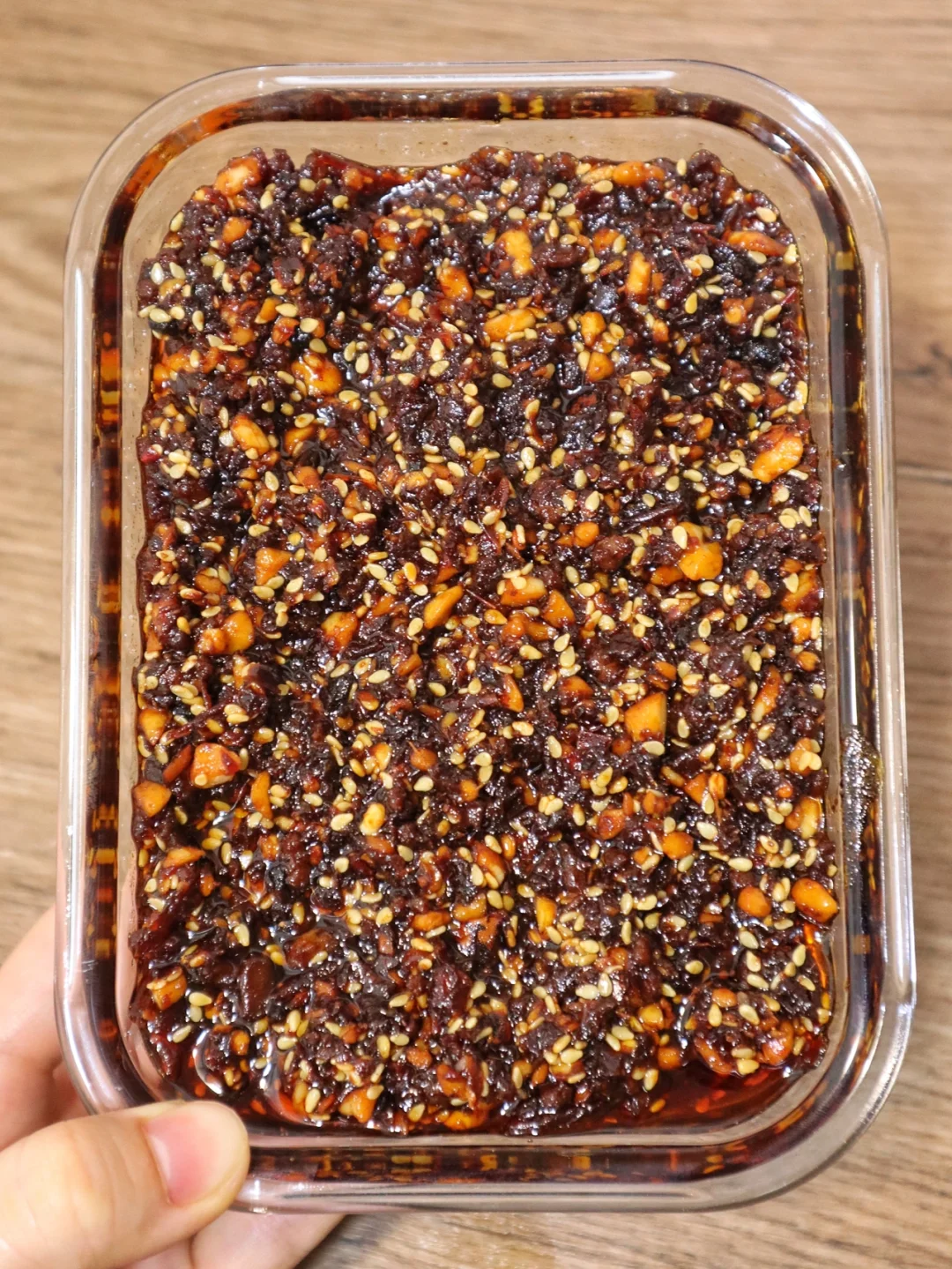 😋做好的辣酱,放凉以后花生碎是脆脆的,拌饭或者夹馒头都老香了👍🏻