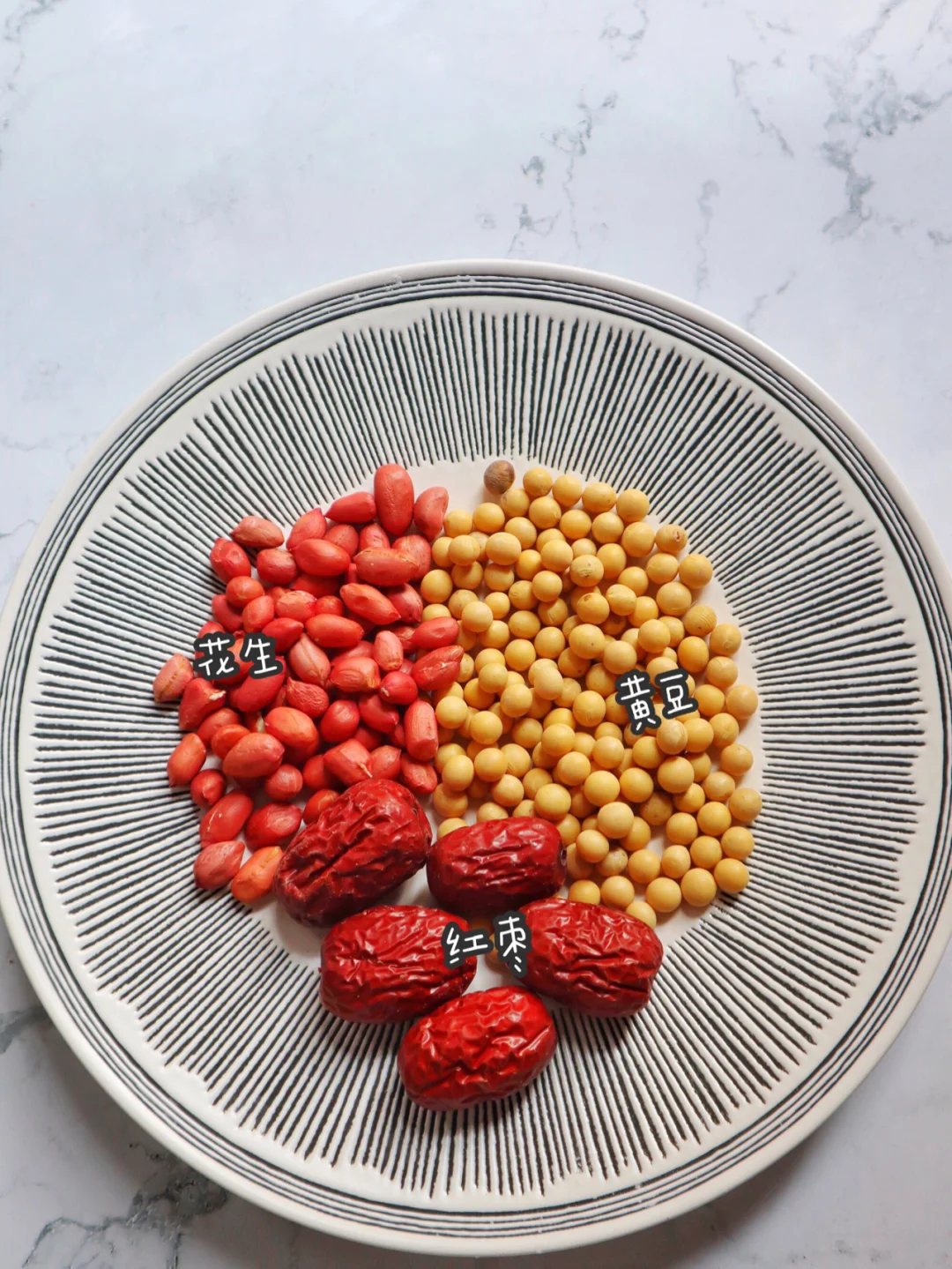 红枣 花生 黄豆,这样做出来的豆浆都不需要加糖,我喜欢打成糊糊喝,喜欢稀一点的要少放食材多放水哦
