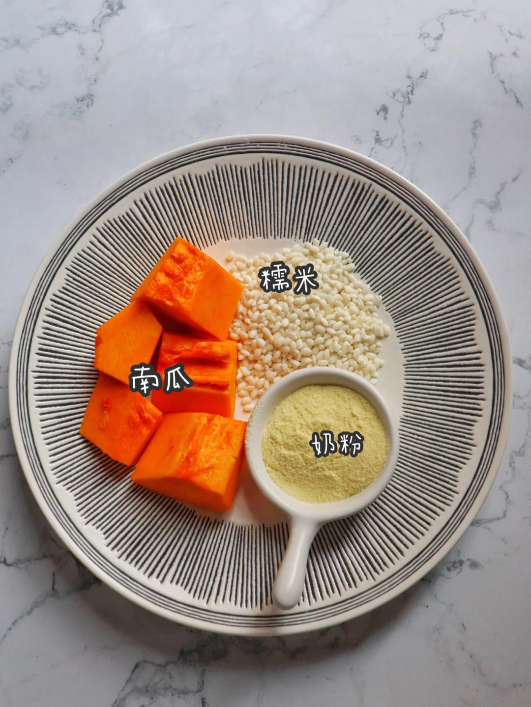 南瓜 奶粉 糯米,这个南瓜粥做出来哇塞了,就是韩式料理店的味道啊