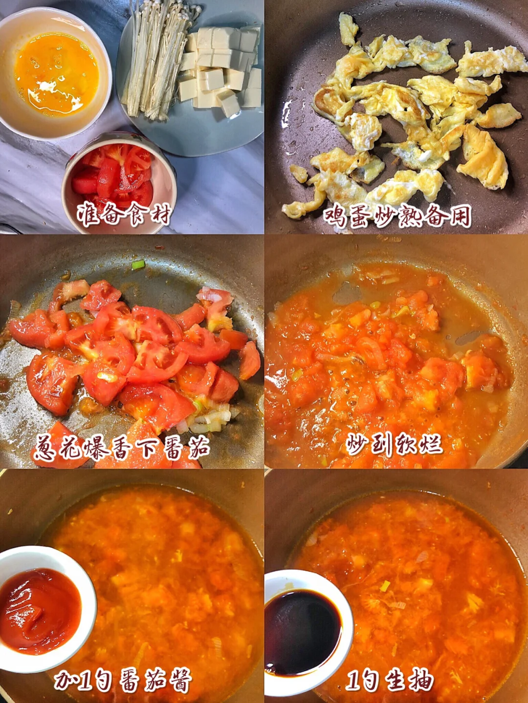 番茄一个 鸡蛋一个 豆腐一块 金针菇一小把