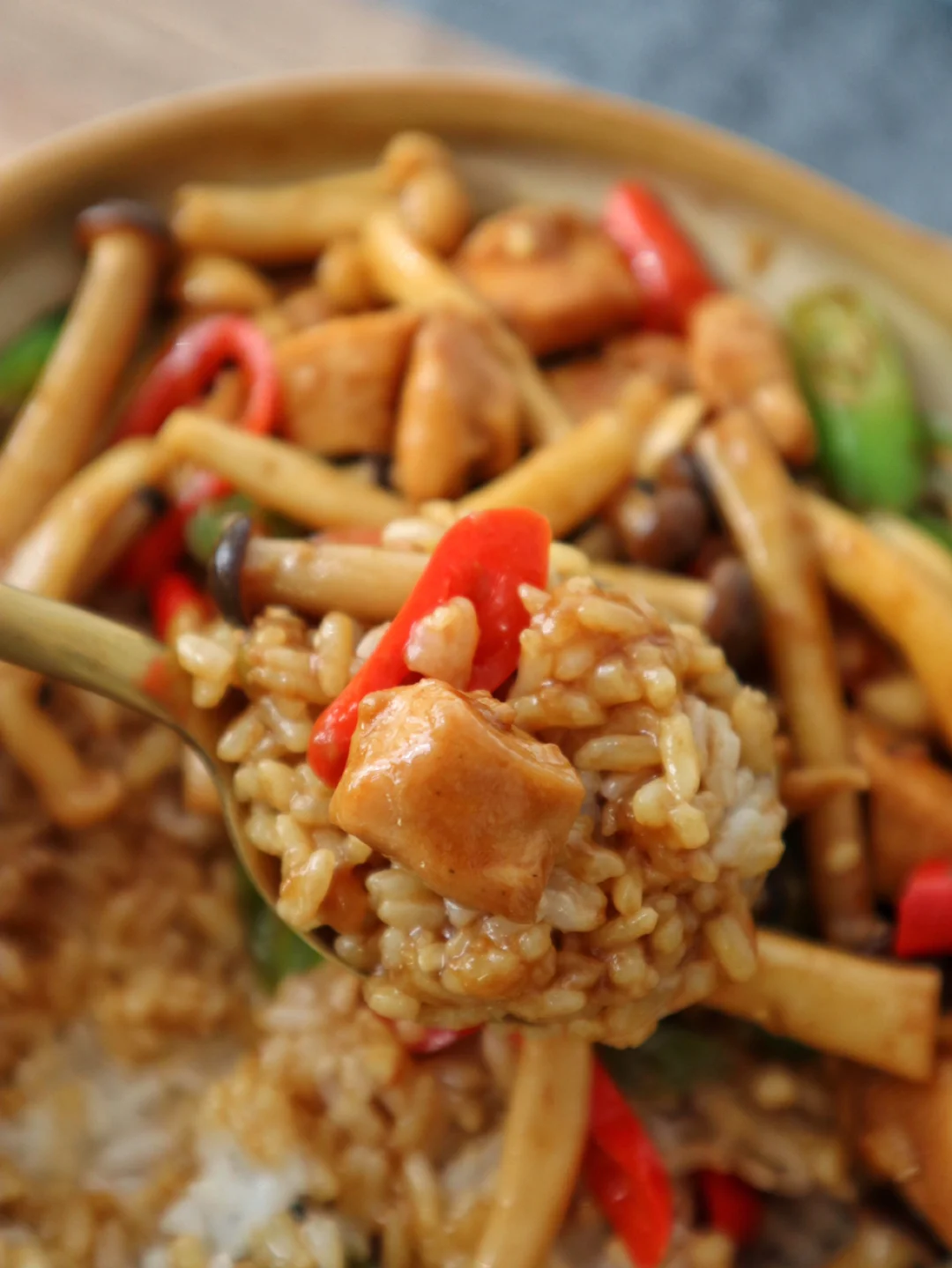 没想到这么好吃的菌菇鸡丁盖浇饭‼️鲜辣下饭