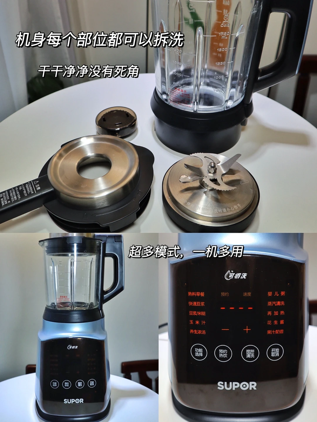 最近常用的苏泊尔可拆洗破壁机破壁机太方便鸟,噪音很小不会吵到家里睡觉的人,而且刀头是可以拆洗的不容易藏污纳垢,机器自身还可以高温杀菌,很适合家里有宝宝的人哦,平时打个果汁什么的真是很方便呢~