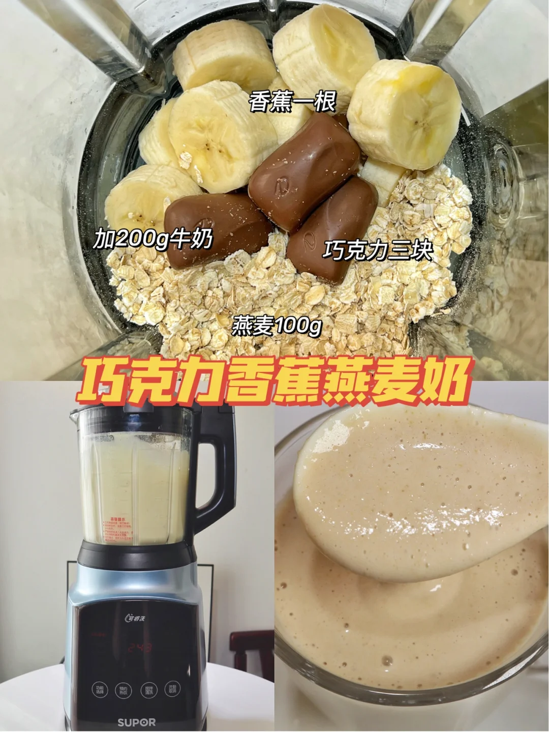 香蕉一根切块 巧克力三块 燕麦100g