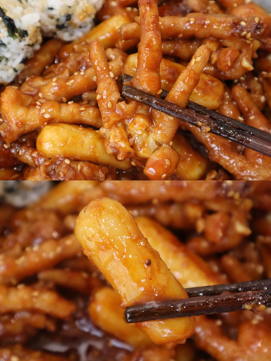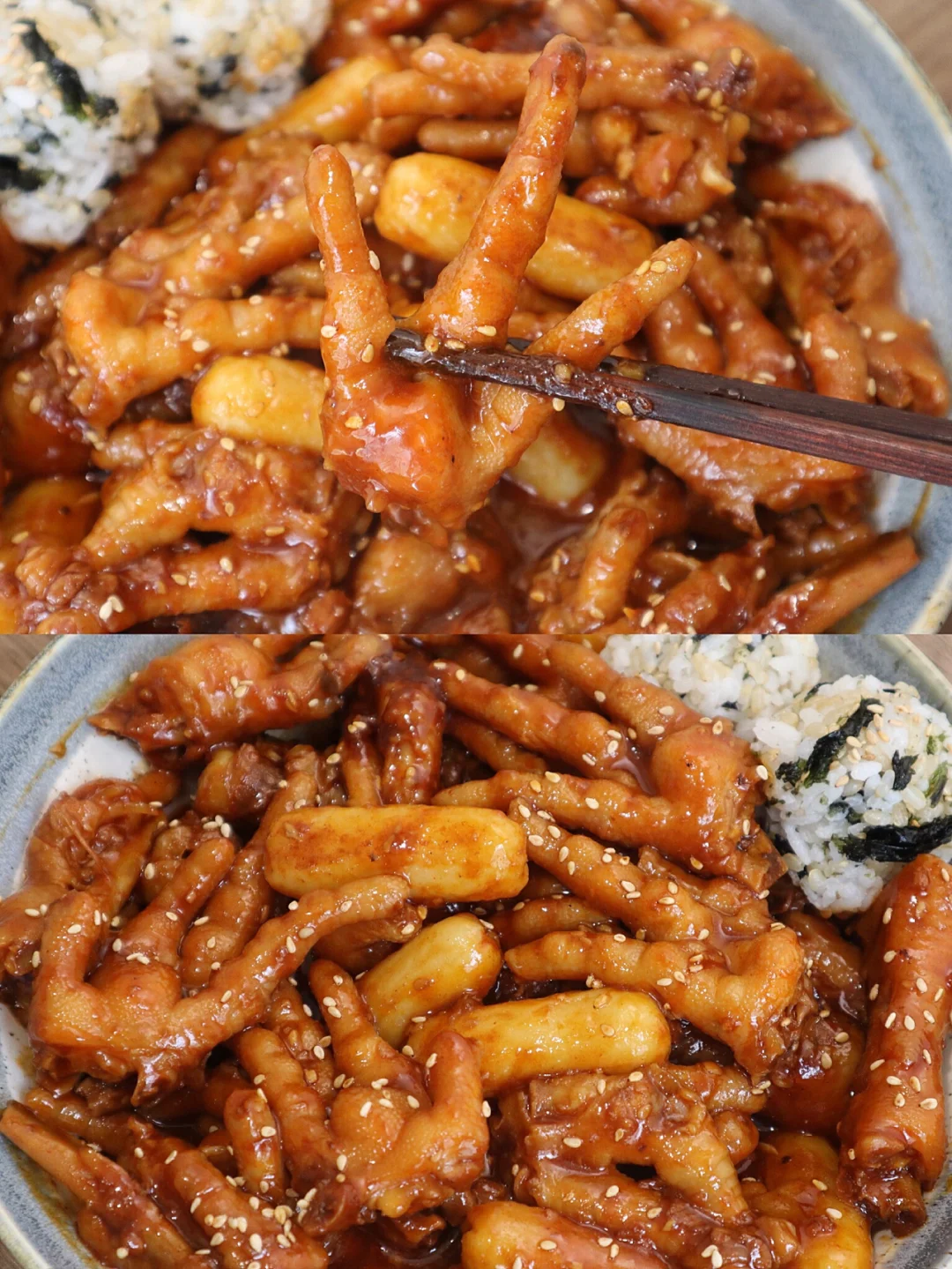 甜辣甜辣的韩式鸡爪‼️饭团沾汤汁绝了🔥