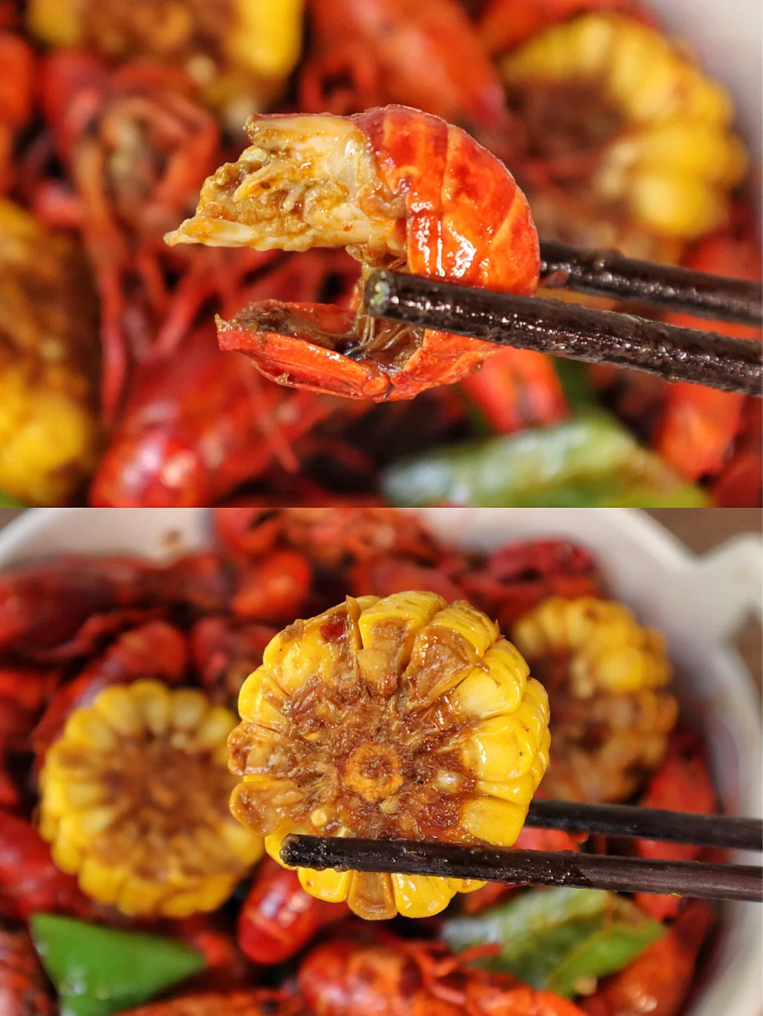 ✨玉米是小龙虾的精髓,浸满了汤汁的味道可太好吃了,最后再拌个面简直啦~
