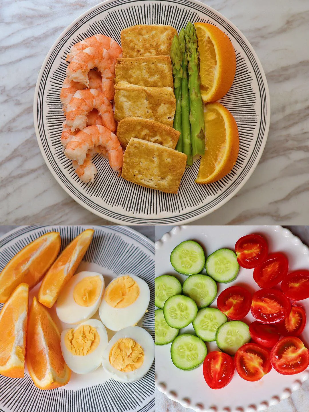 午餐:煎豆腐➕水煮虾仁➕水煮芦笋➕蒸紫薯(煎豆腐我真的太爱了,蘸点蒜末生抽超满足)