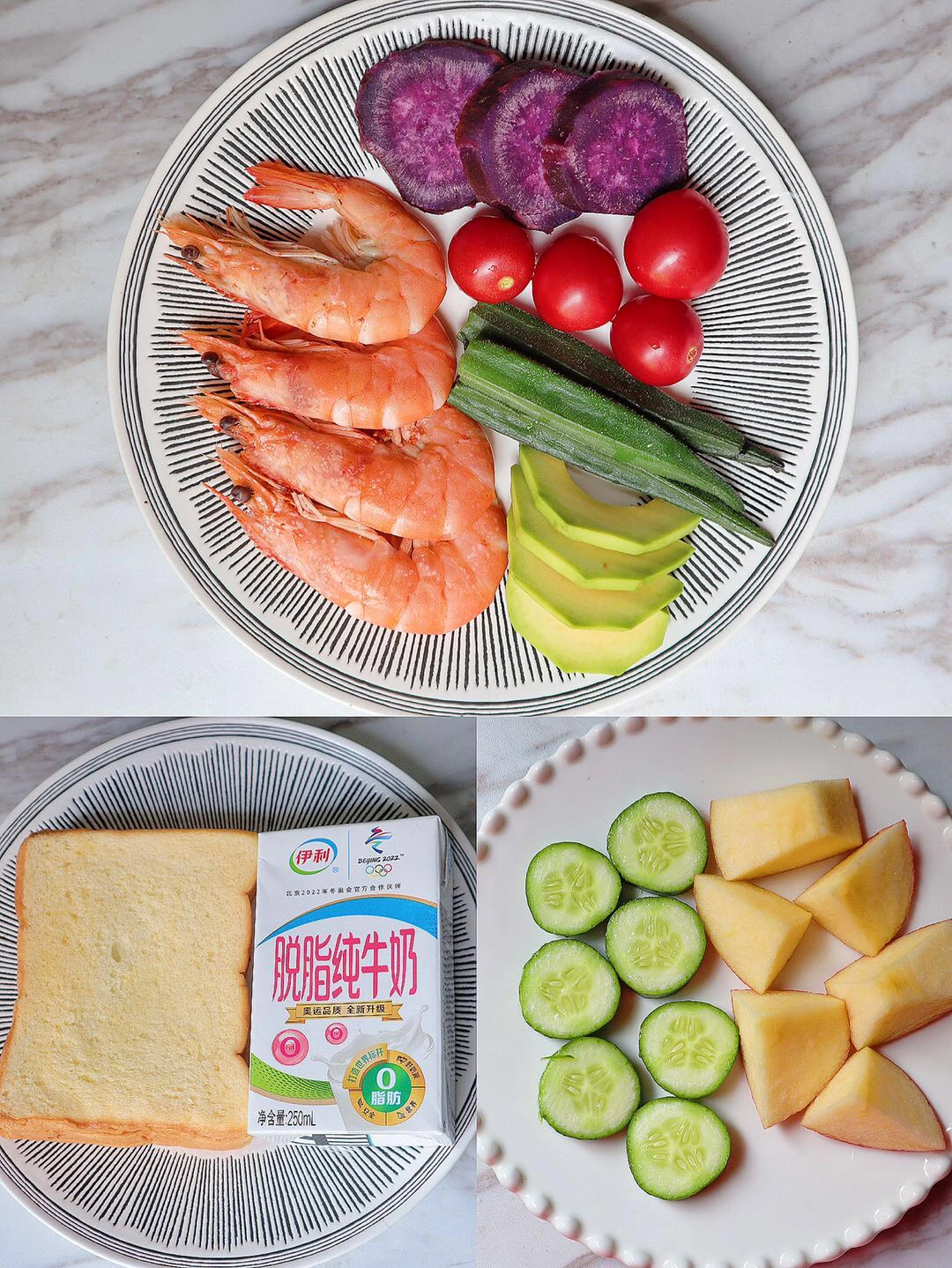 午餐:牛油果➕虾仁➕紫薯➕荷兰豆➕小番茄