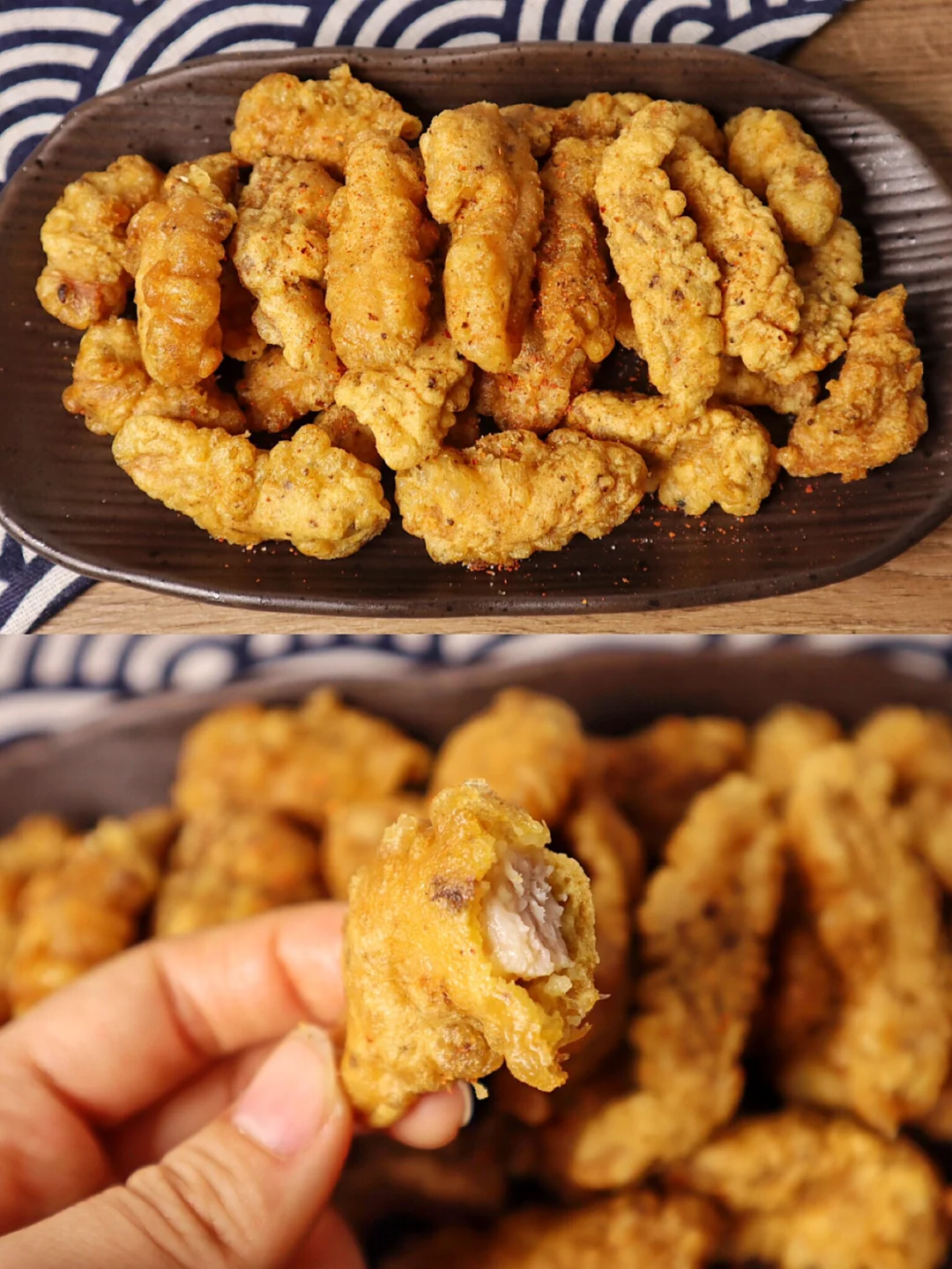 ✨最后撒上椒盐粉和辣椒粉就可以吃啦😆我一口一个停不下来啦