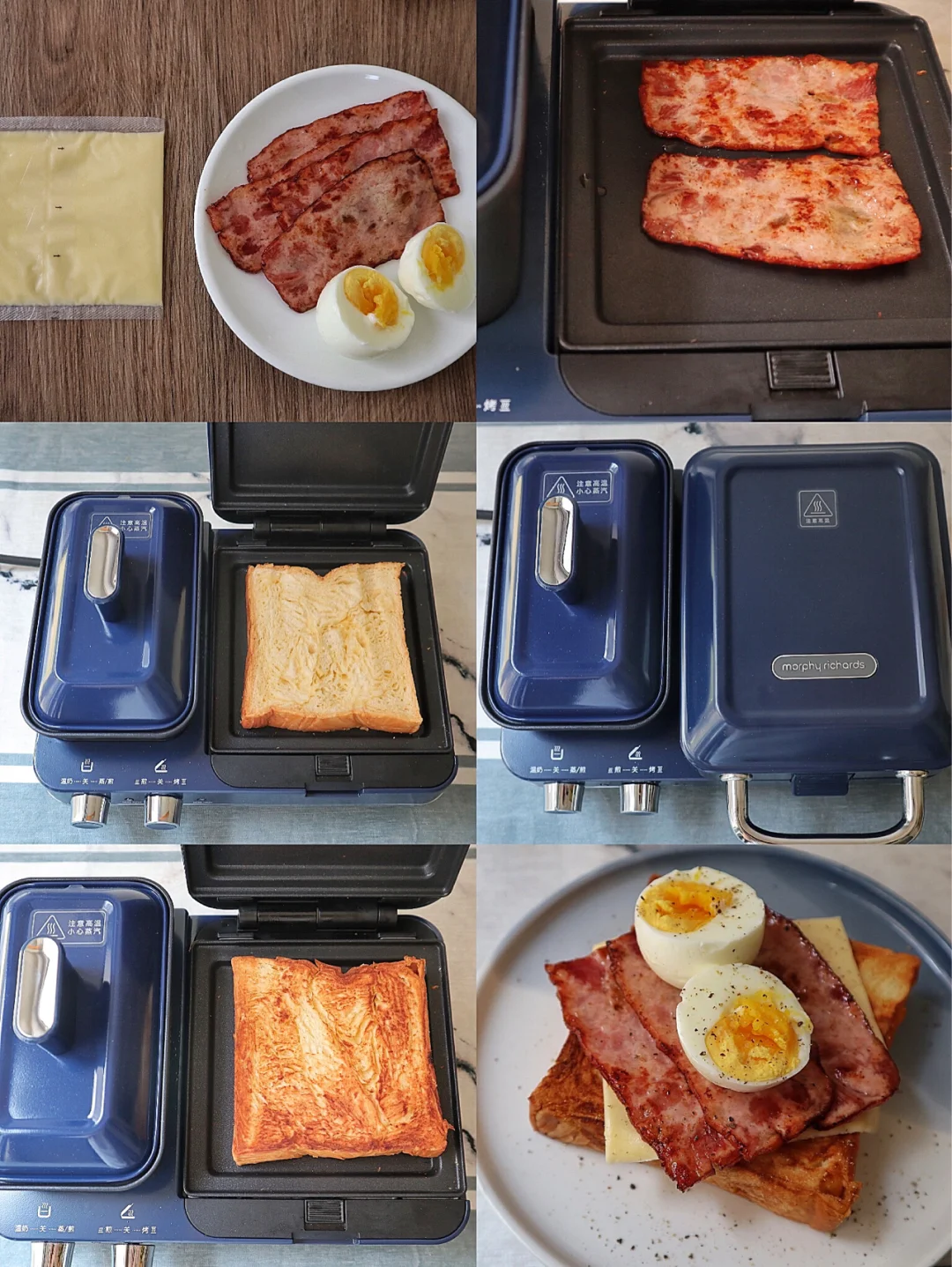 培根煎熟,轻食机蒸鸡蛋的时候烤下吐司