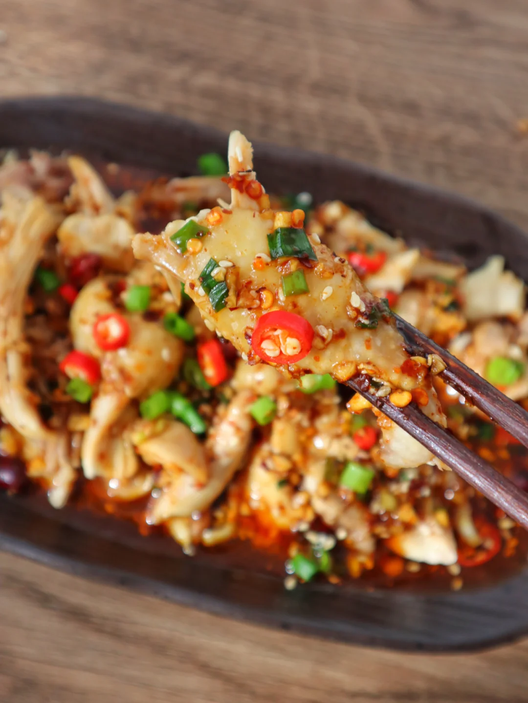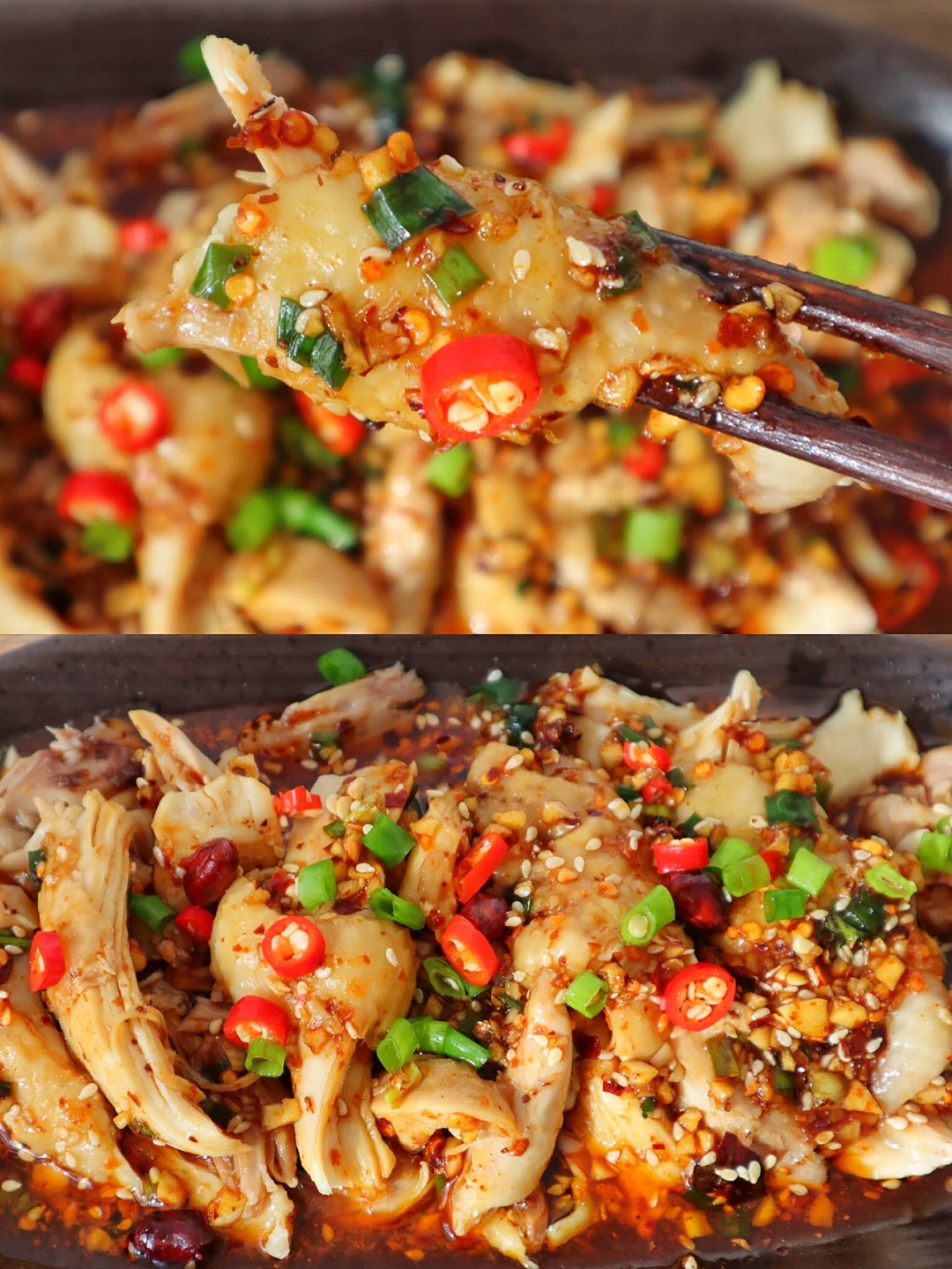 3️⃣调好的料汁淋在鸡肉上就可以了!喜欢吃辣的可以在撒一些小米辣哦