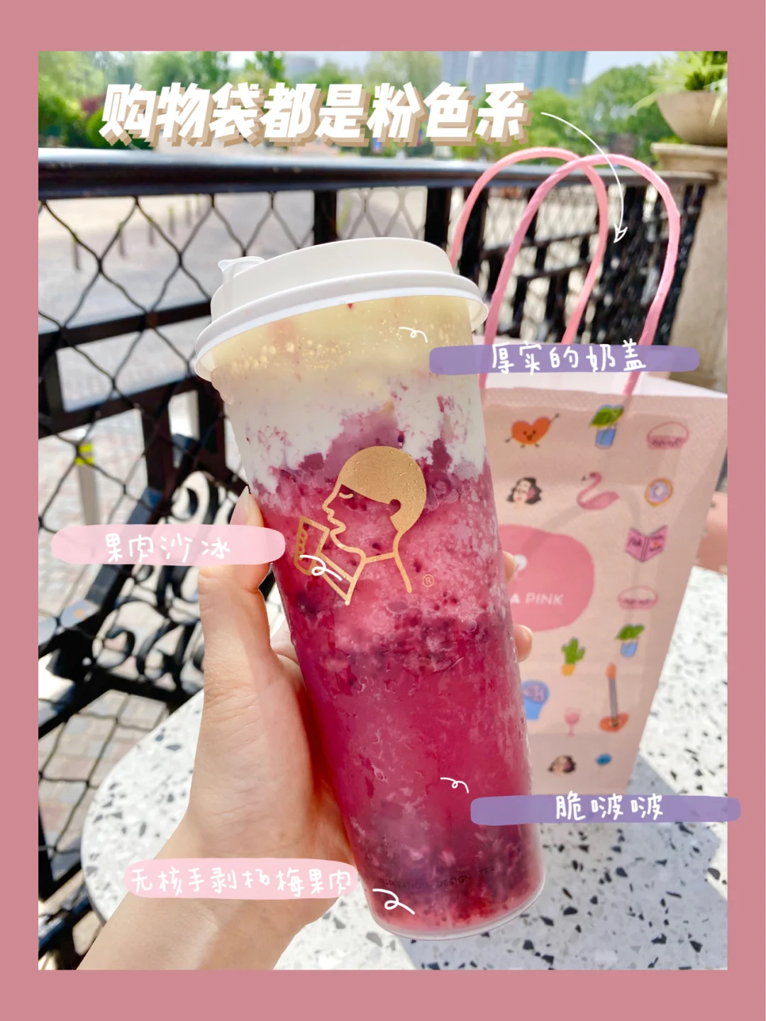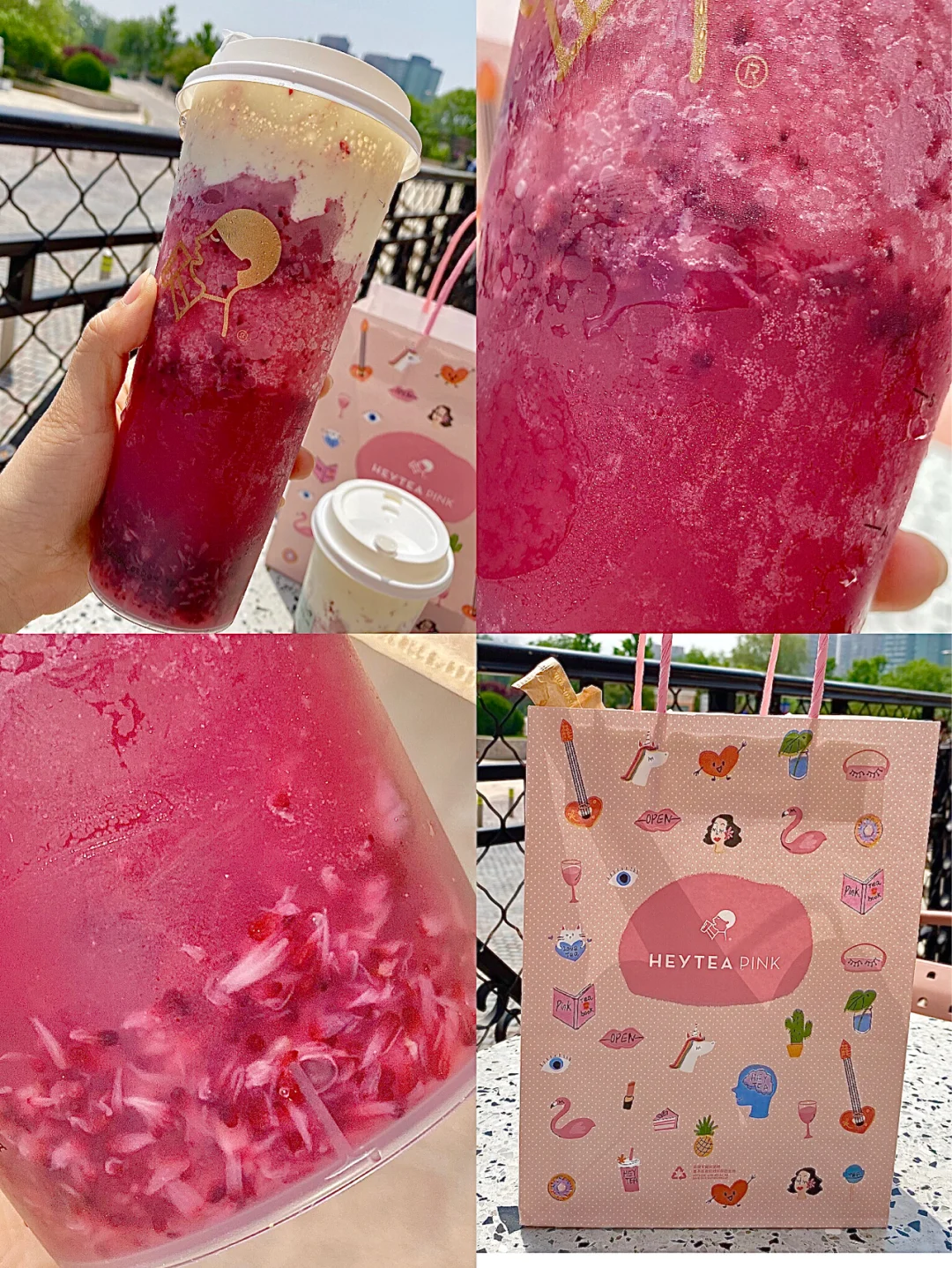 喜茶多肉杨梅上了以后就一直想喝,从大悦城叫了几次外卖都显示售空,今天去蓝色港湾逛街看到了pink店于是立刻从手机上预约也显示售空