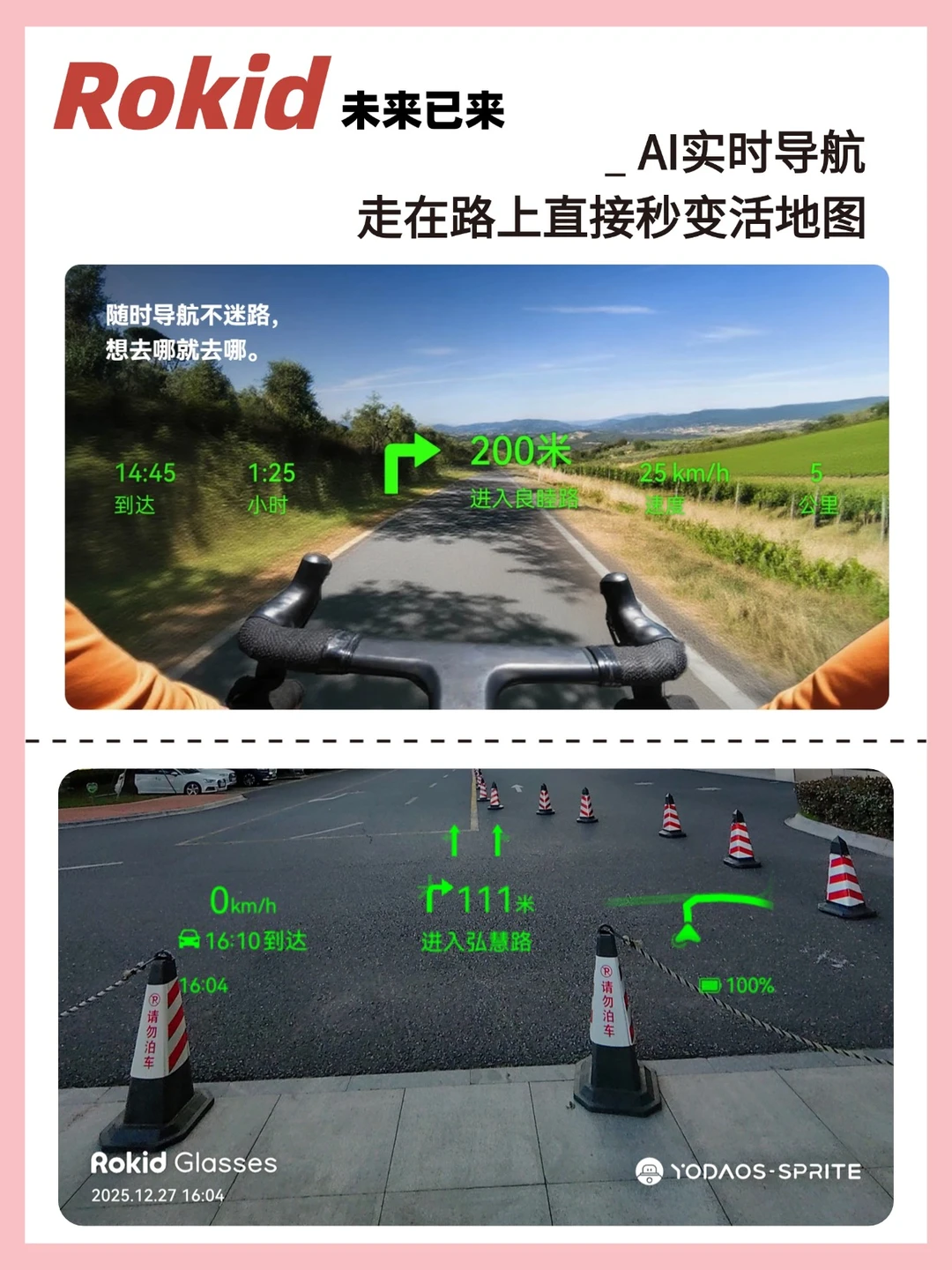 通勤党骑单车还要单手骑车单手刷导航?👓不存在的!直接喊“乐奇导航”,眼前秒变AR路线图,箭头直接怼你脸上指路,比女朋友发的定位还清晰!顺带让它播个球赛战报或者切首说唱,通勤路瞬间变个人主场,社畜也能支棱起来!