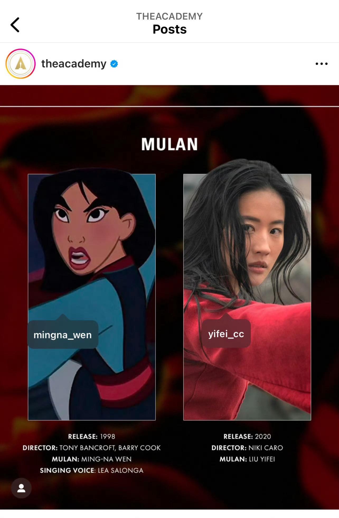 (图2)奥斯卡奖官方ig发布刘亦菲花木兰
