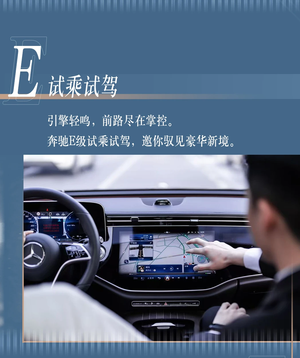 ▸ 静态品鉴 E 级车 ▸ 搏击秀 + 趣味互动 ▸ 试乘试驾,感受优雅驾驭