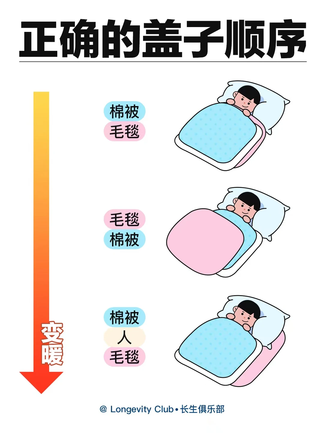 试试这个盖被子的顺序,可以有效提升保暖效果噢~