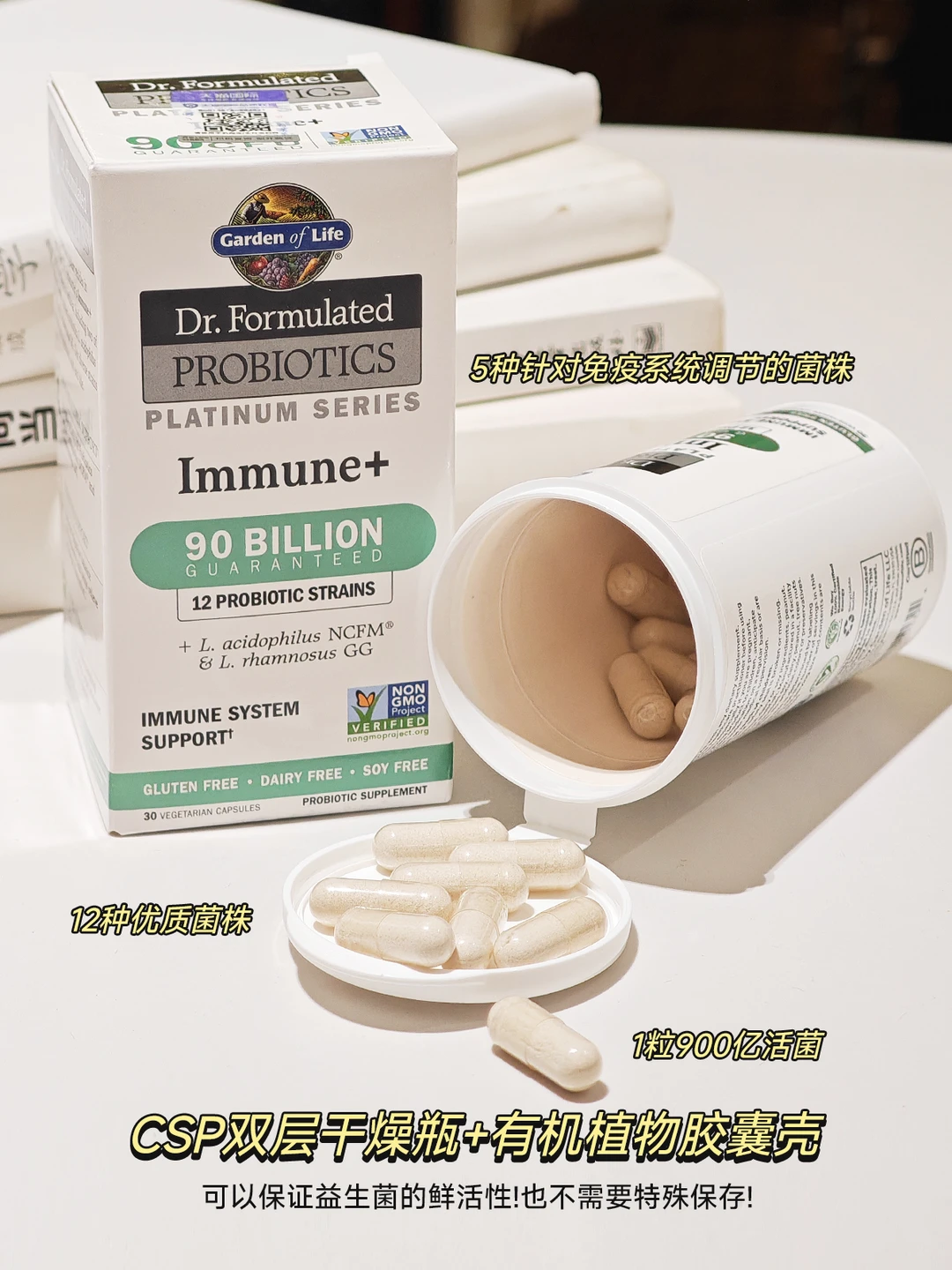 ✅采用的是CSP双层干燥瓶+有机植物胶囊壳。防潮隔温,可以保证益生菌的鲜活性!也不需要特殊保存!