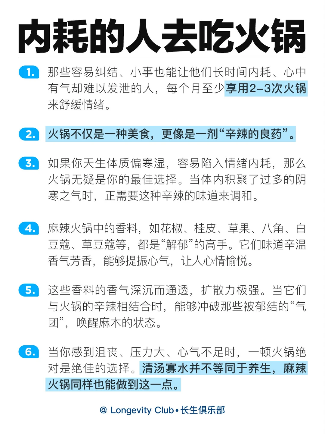 那些容易陷入纠结、对小事过分在意、内心郁结难以释怀的朋友,可以每个月吃2-3次火锅来放松心情。