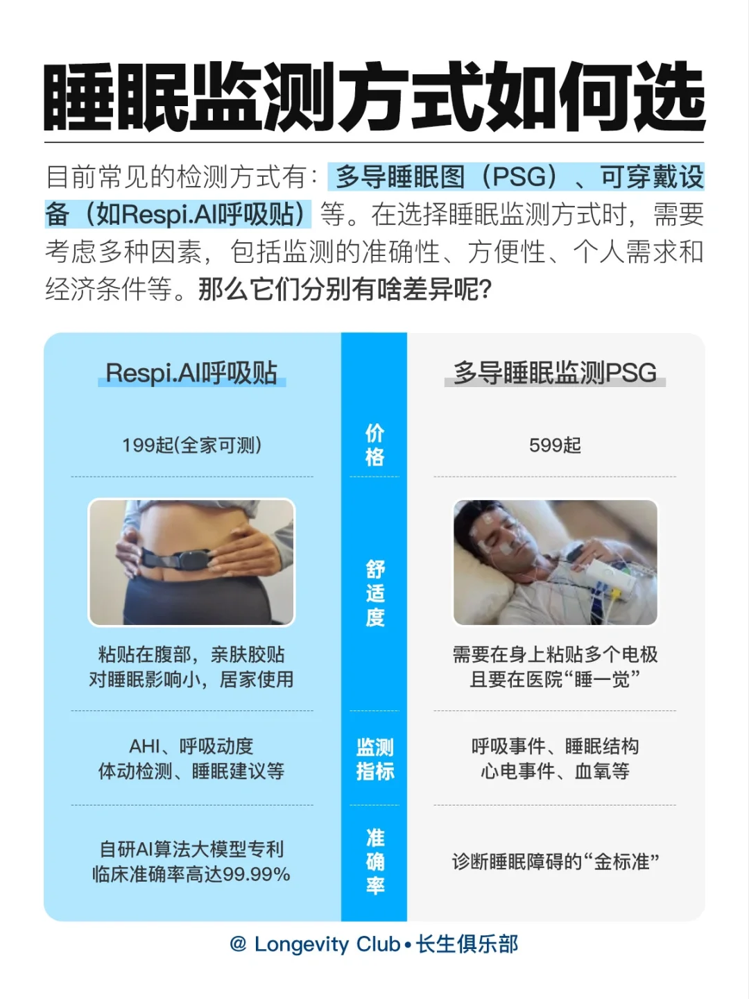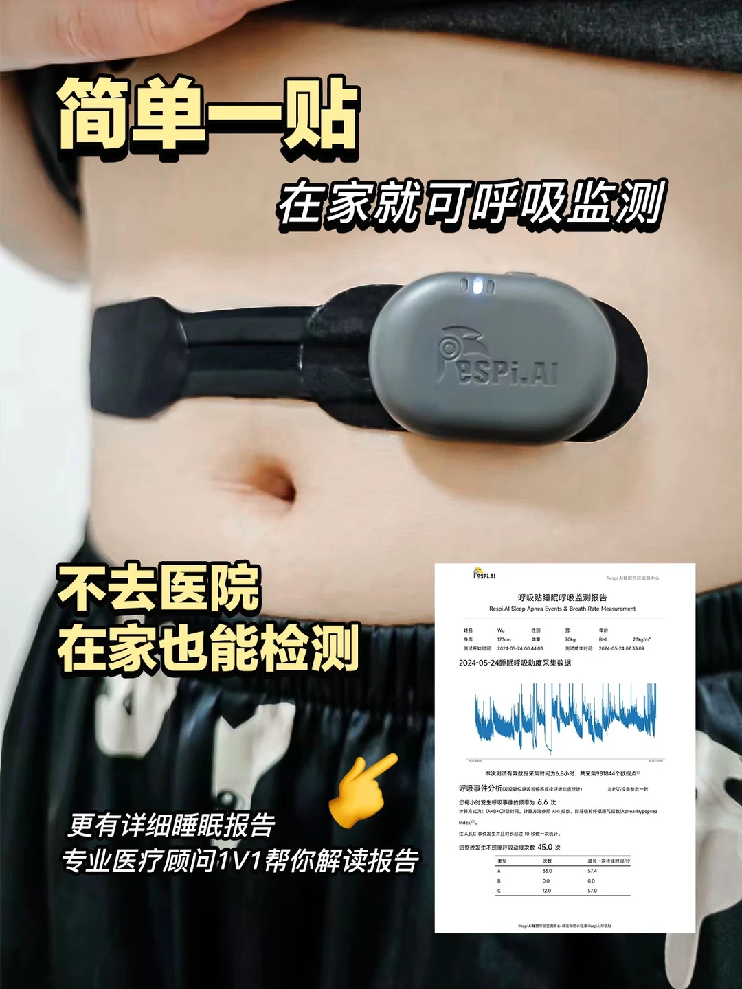 目前常见的检测方式有:多导睡眠图(PSG)、可穿戴设备(如Respi.Al呼吸贴)等。