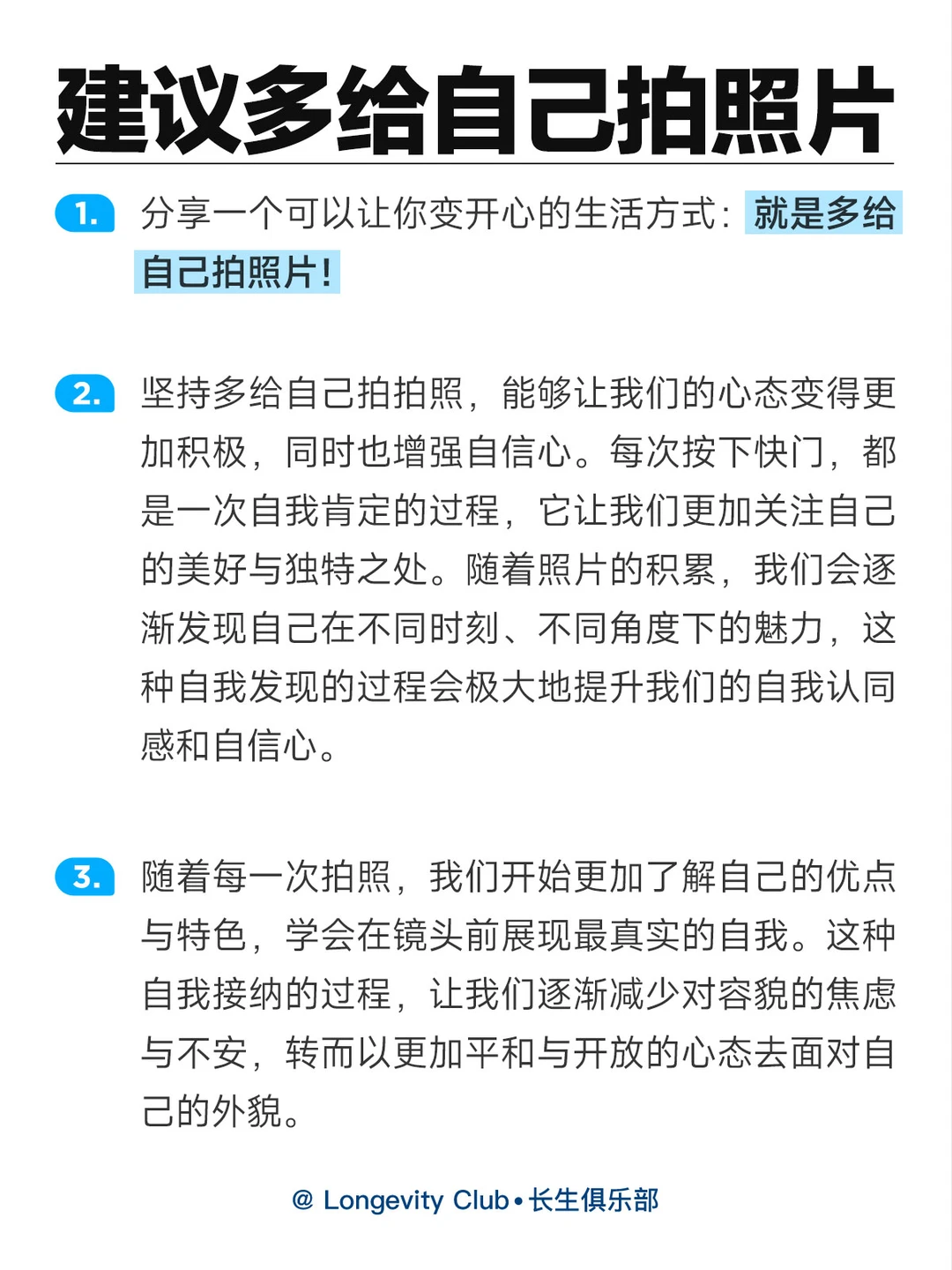 亲爱的朋友,请拿起手机或相机,多给自己拍些照片吧