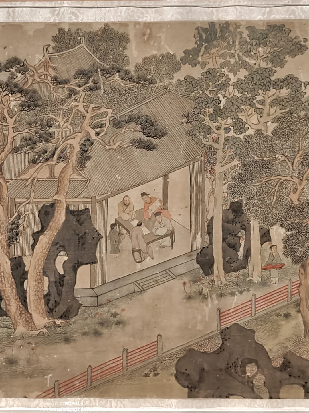 ⚱️仇英·竹院品古图:江南一位私家园林主人邀约三五知己在竹院雅景中品茗赏珍