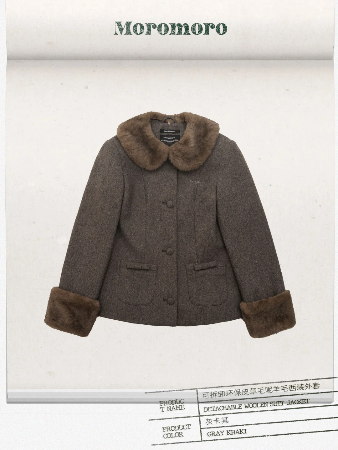 感谢sung 上身可拆卸环保皮草羊毛毛呢西装外套