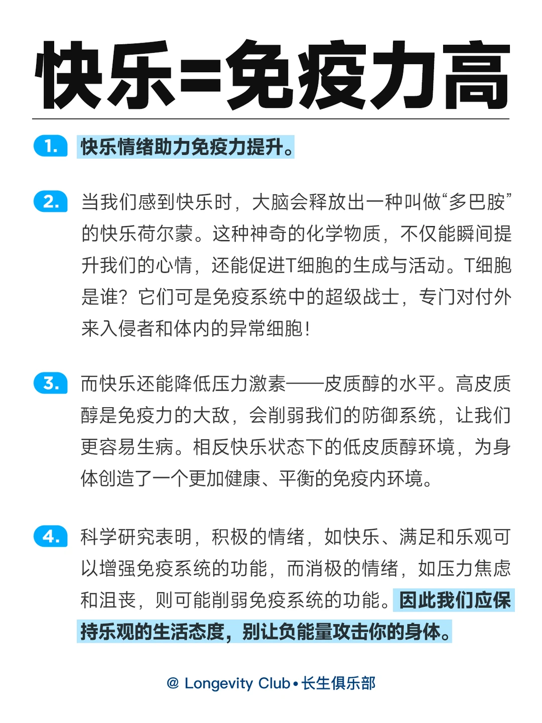 积极的情绪,如快乐、满足和乐观可以增强免疫系统的功能,而消极的情绪,如压力焦虑和沮丧,则可能削弱免疫系统的功能。因此我们应保持乐观的生活态度,别让负能量攻击你的身体。