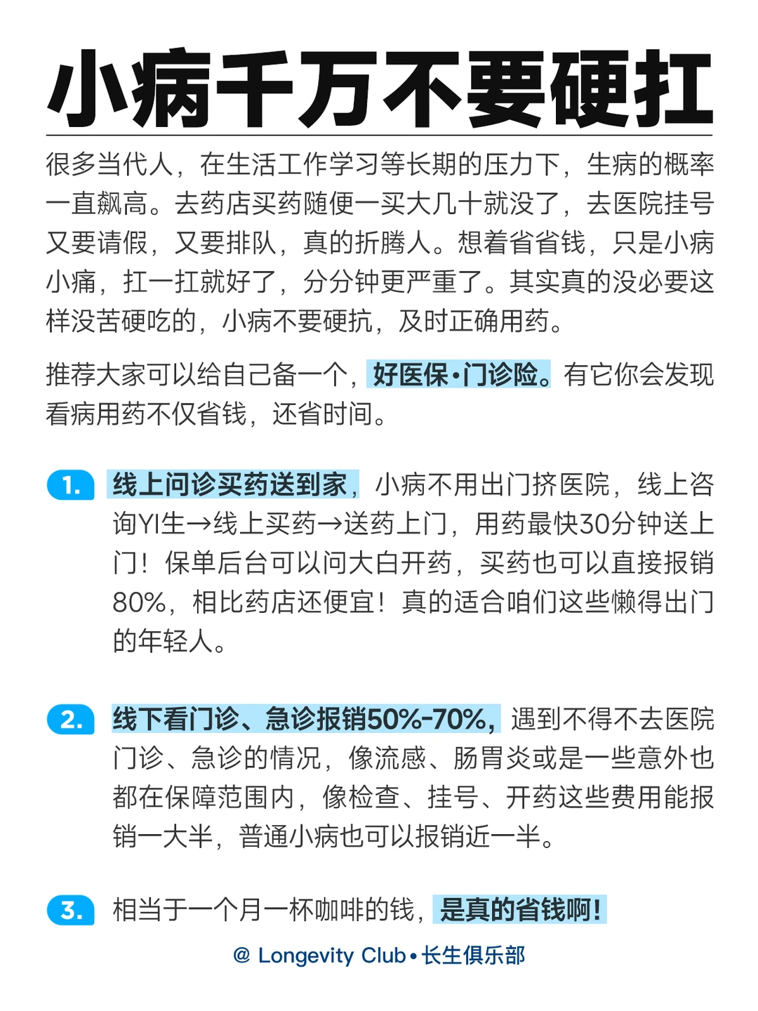 推荐大家可以给自己备一个♥好医保·门诊险♥