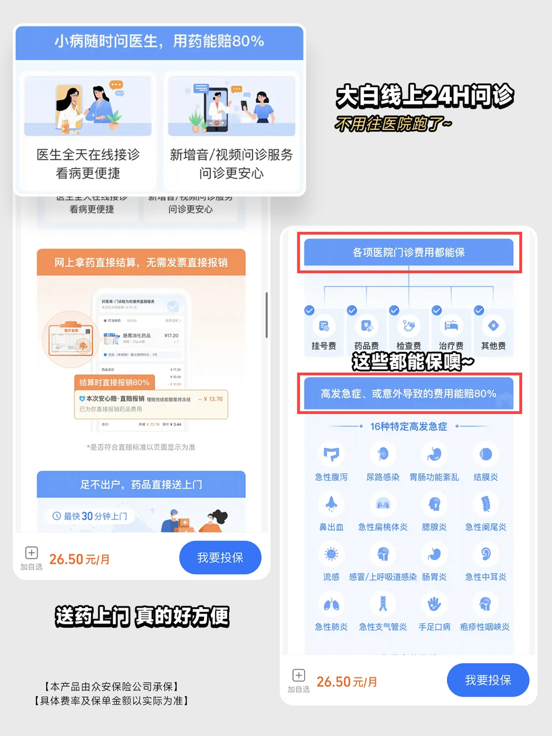 ✅线上看病买药送到家,小病不用出门挤医院,线上咨询Y生→线上买药→送药上门,用药最快30分钟送上门!保单后台可以问大白开药,买药也可以直接报销80%,相比药店还便宜!真的适合咱们这些懒得出门的年轻人。