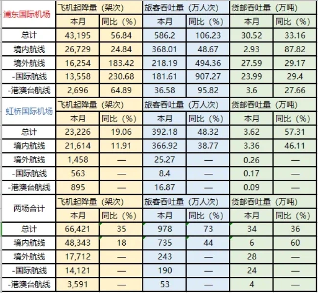 两大机场总计旅客吞吐量978万人次,同比增长73%。