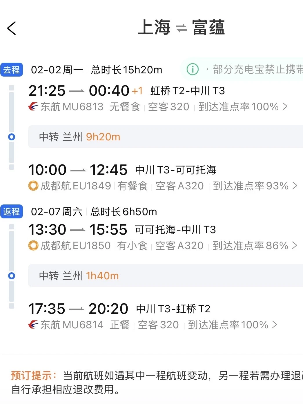 上海-兰州-富蕴(非联程)