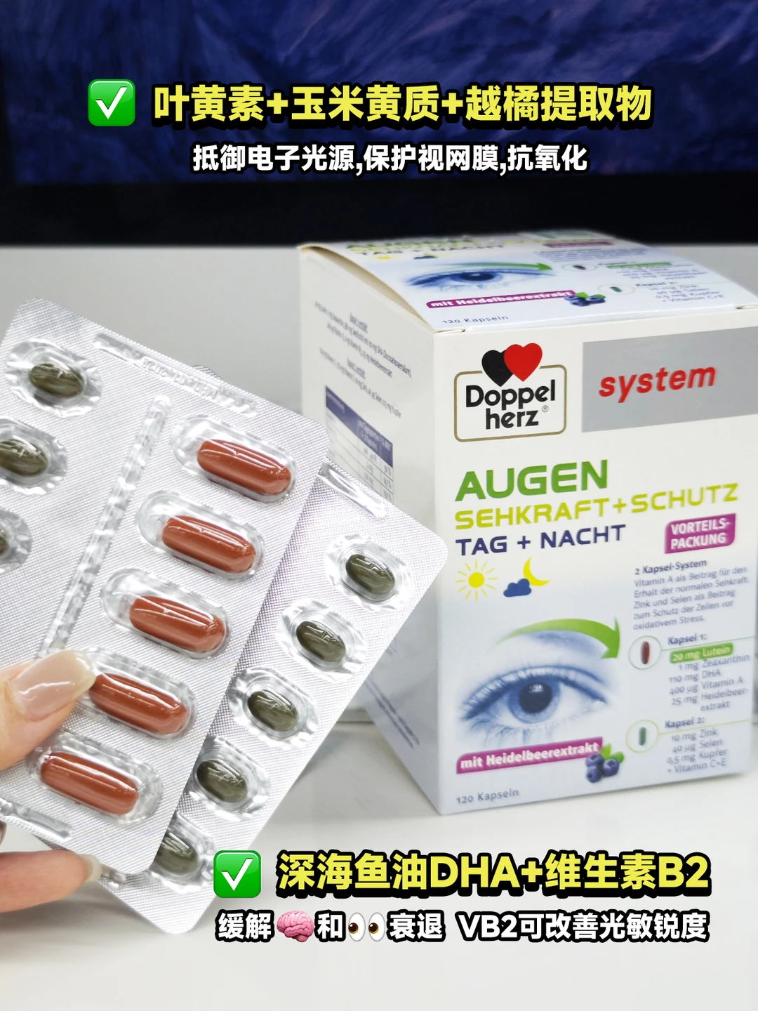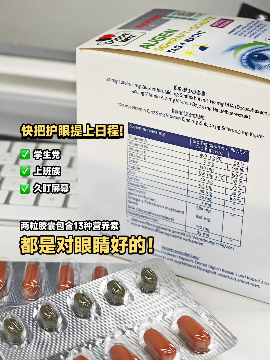 🟤棕色胶囊:叶黄素+玉米黄素+VA+DHA+VB12...