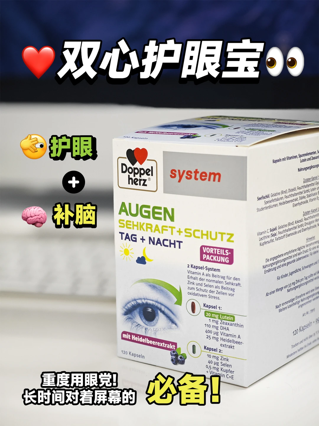 长时间面对电脑屏幕的人群,可以试试☞双心护眼宝