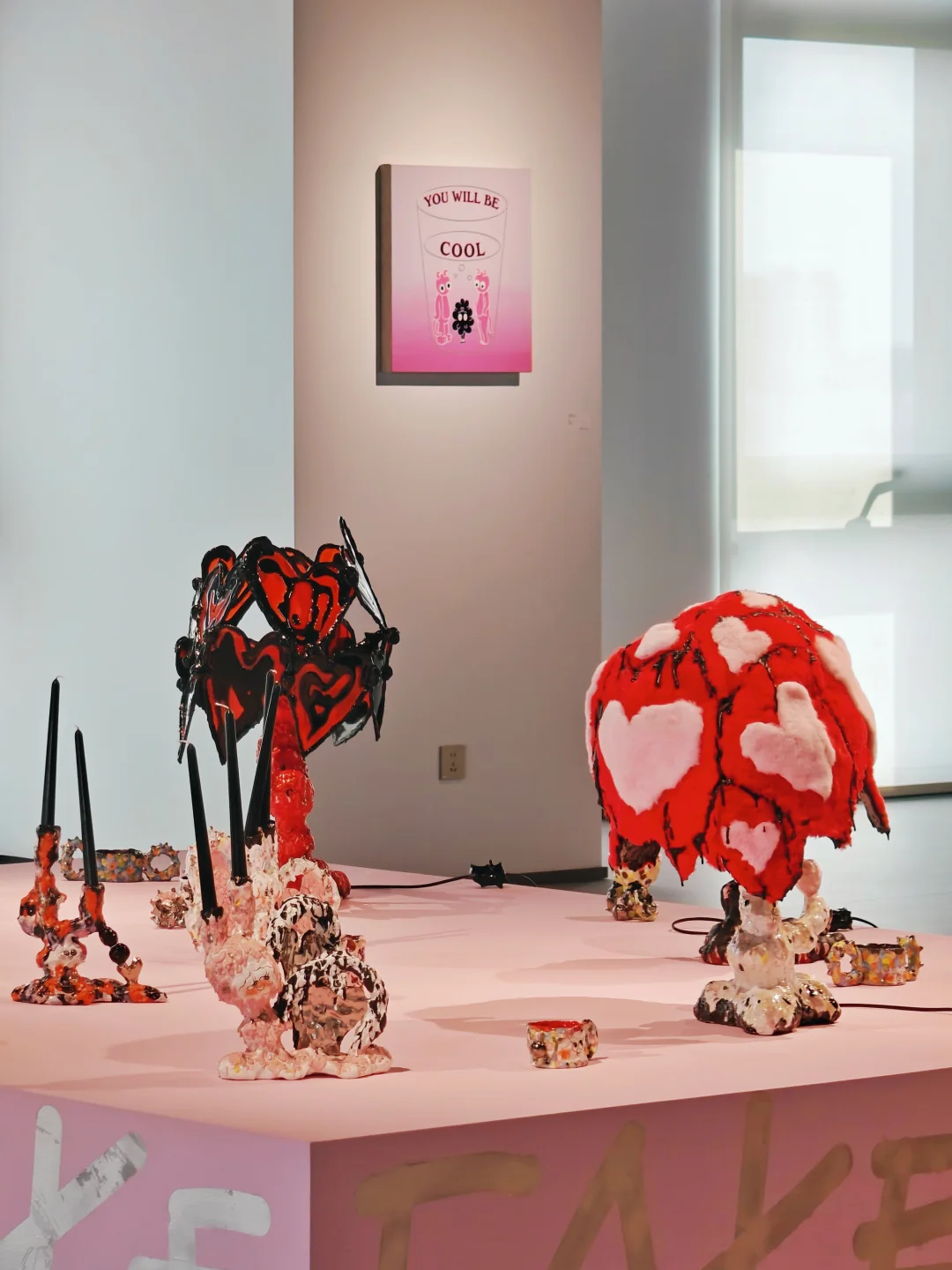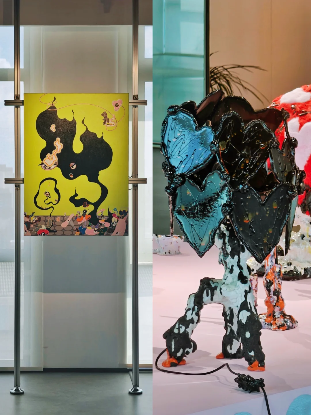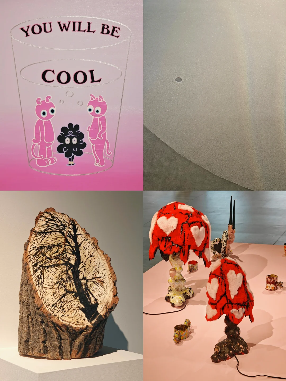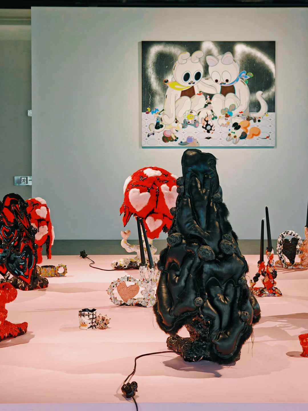 绘画使用亮丽色彩、可爱造型表现悲伤主题,含黑色幽默,将抽象概念转化为视觉符号,常用Pandan(双马尾女孩)和猫的意象,属“情绪的流动与转化”板块。