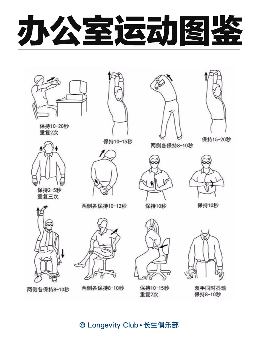 再一张办公室运动图鉴,花3分钟,带薪健康!